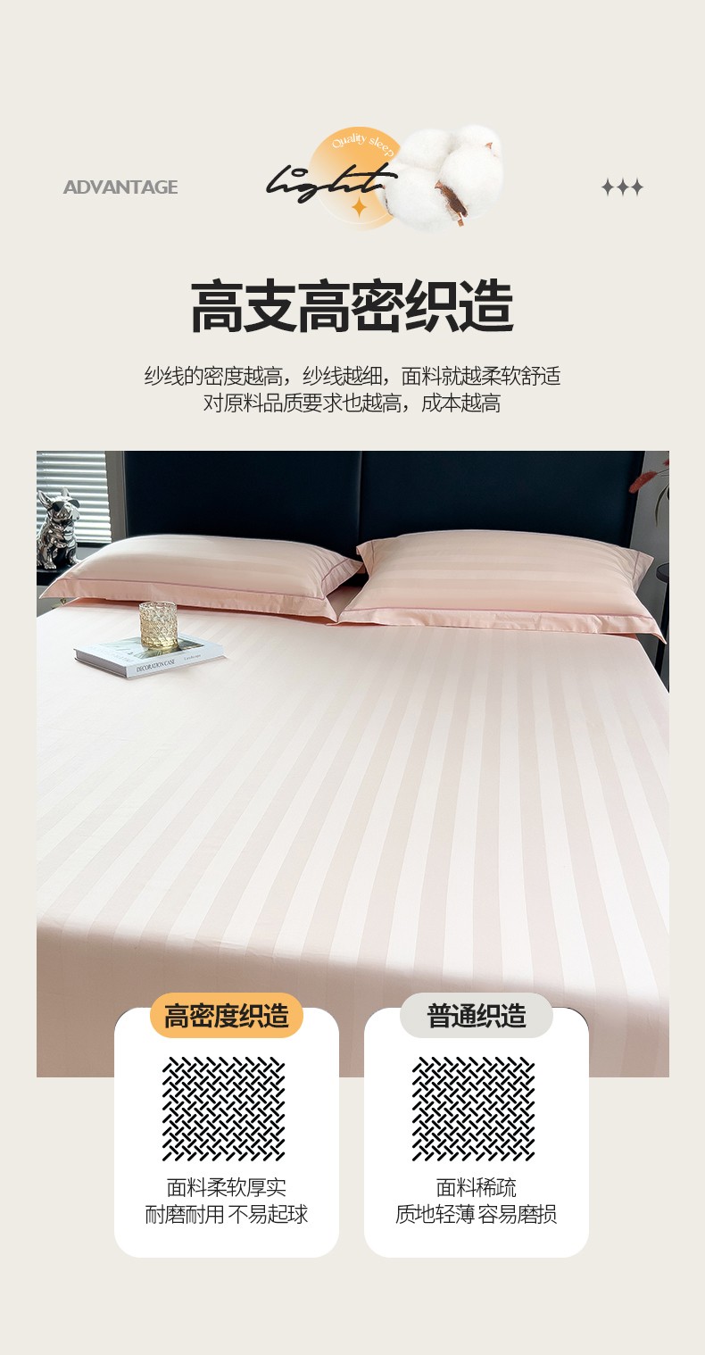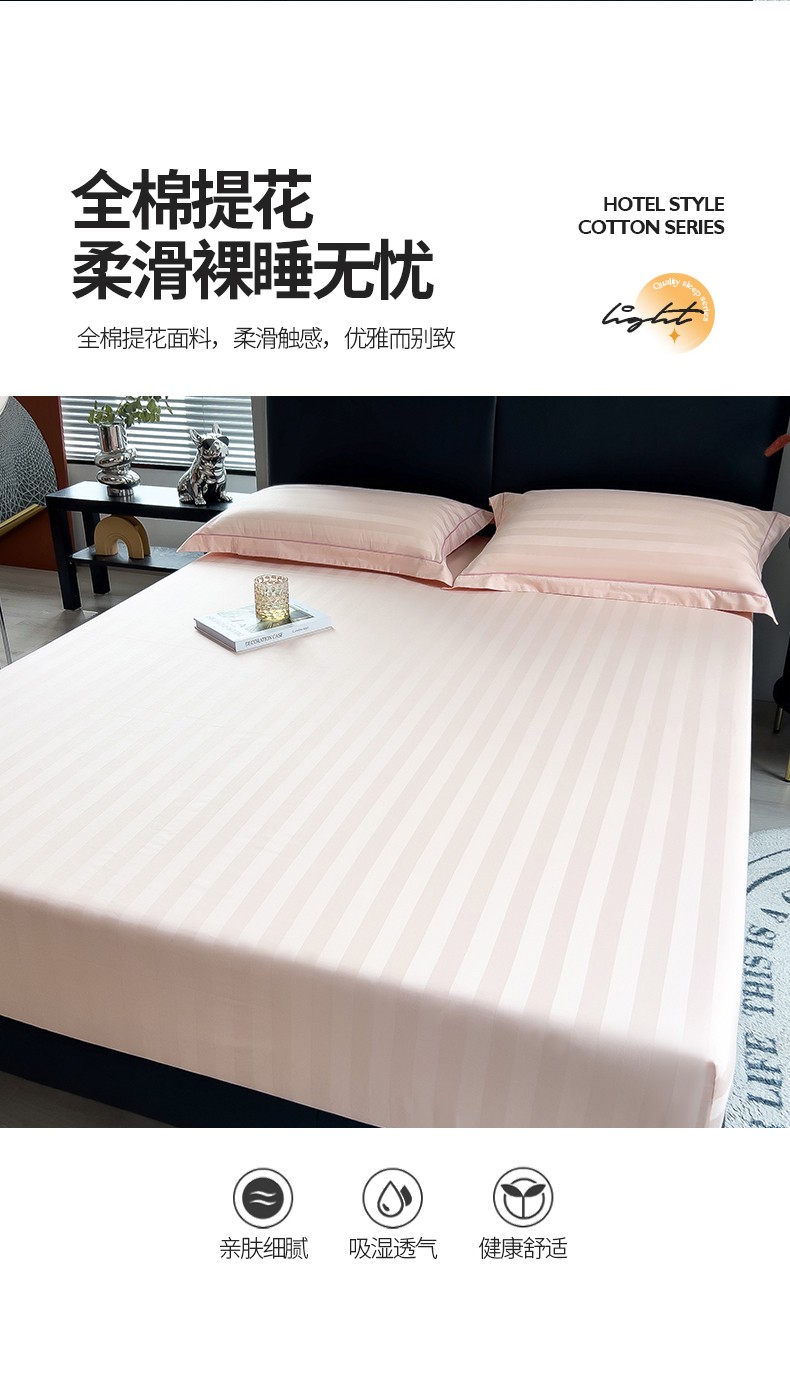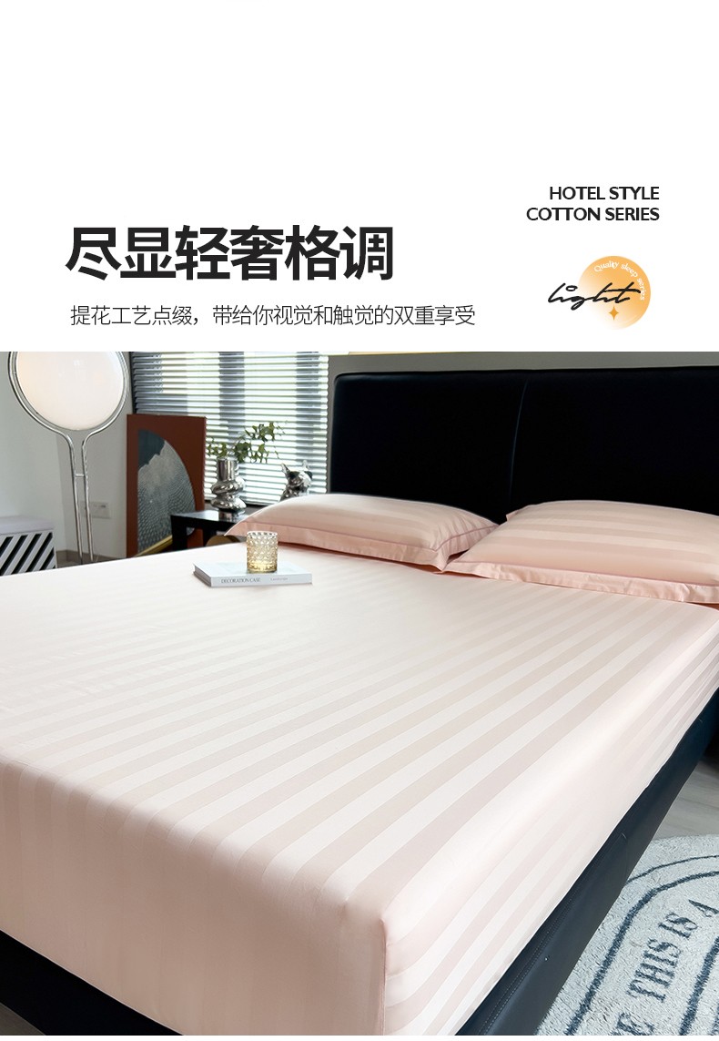 商品名称:慕尚 2025新款60支长绒棉提花条纹系列单品床笠 条纹浅玉