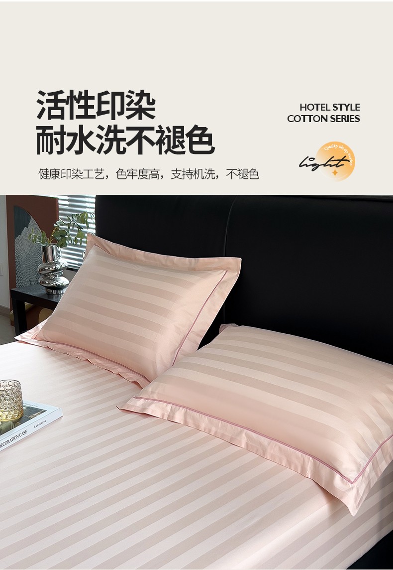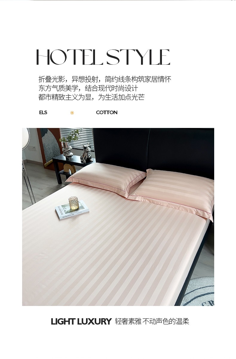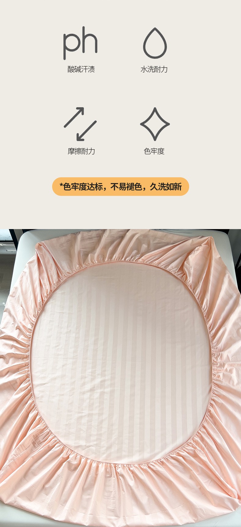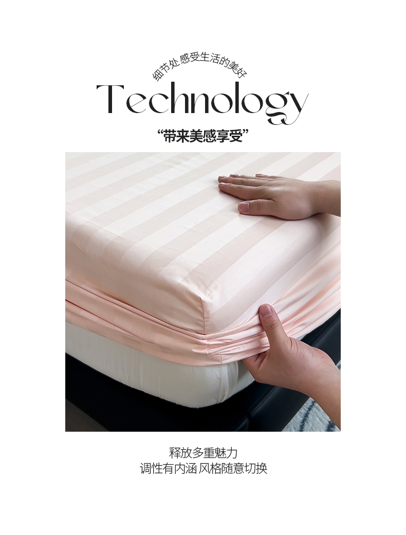 商品名称:慕尚 2025新款60支长绒棉提花条纹系列单品床笠 条纹浅玉