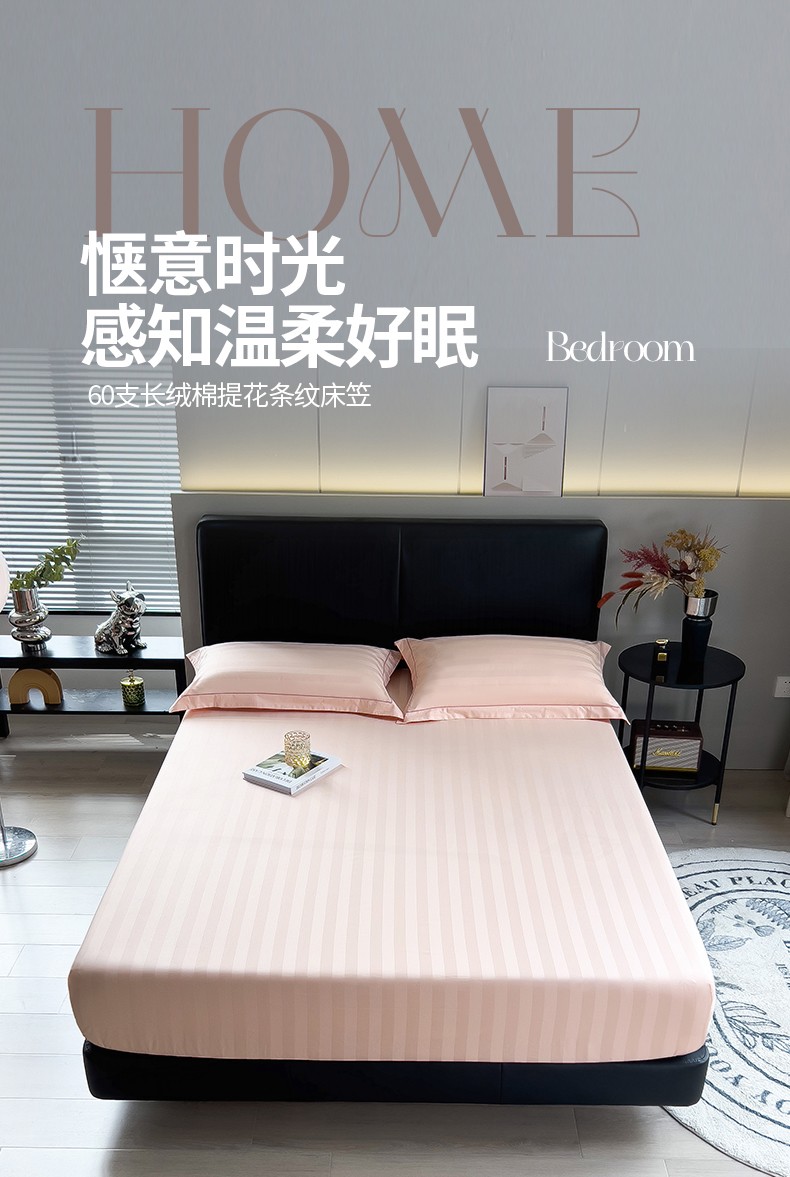 慕尚 2025新款60支长绒棉提花条纹系列单品床笠 条纹浅玉