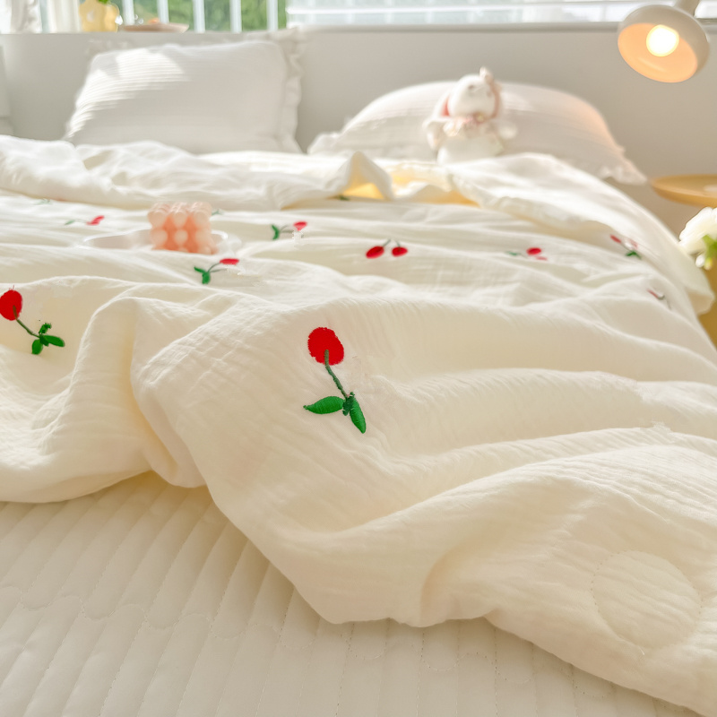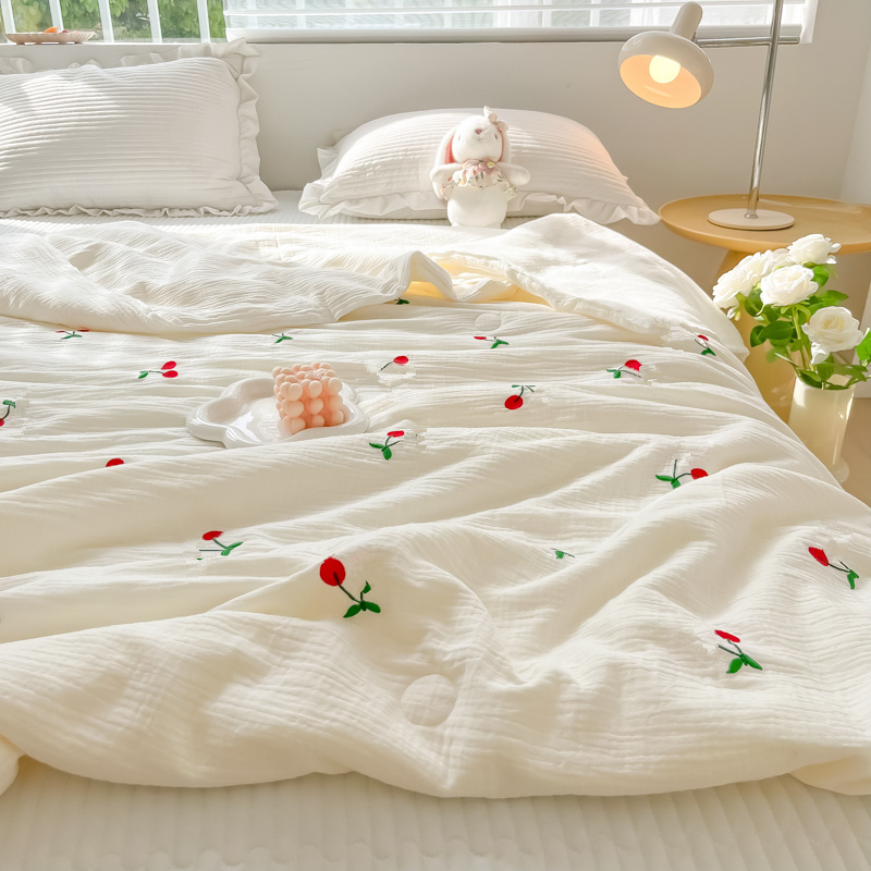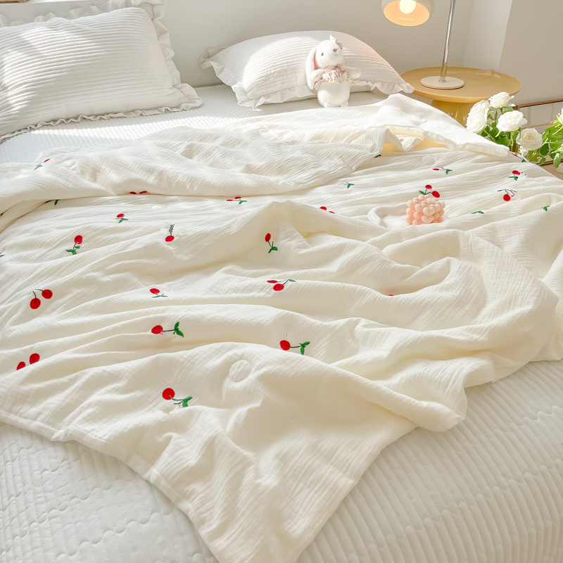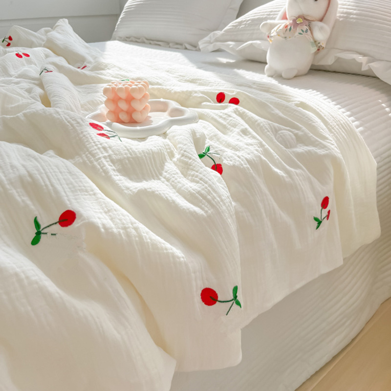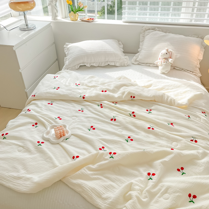 商品名称:盼季2023新款双层纱小清新超软糯夏被夏凉被夏季空调被薄被子被芯 ins-樱桃