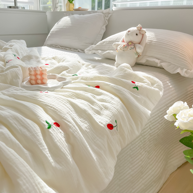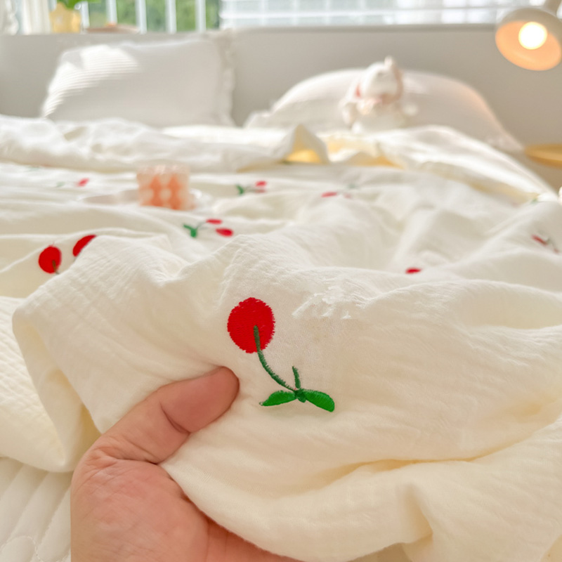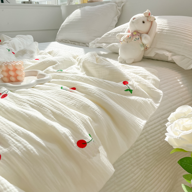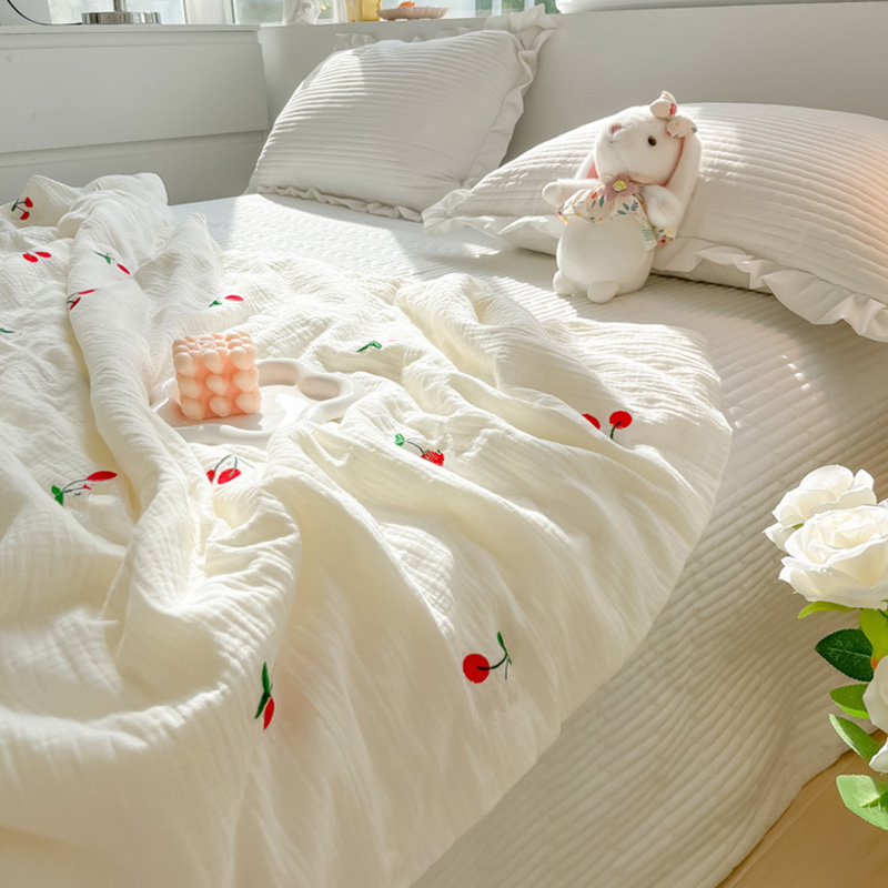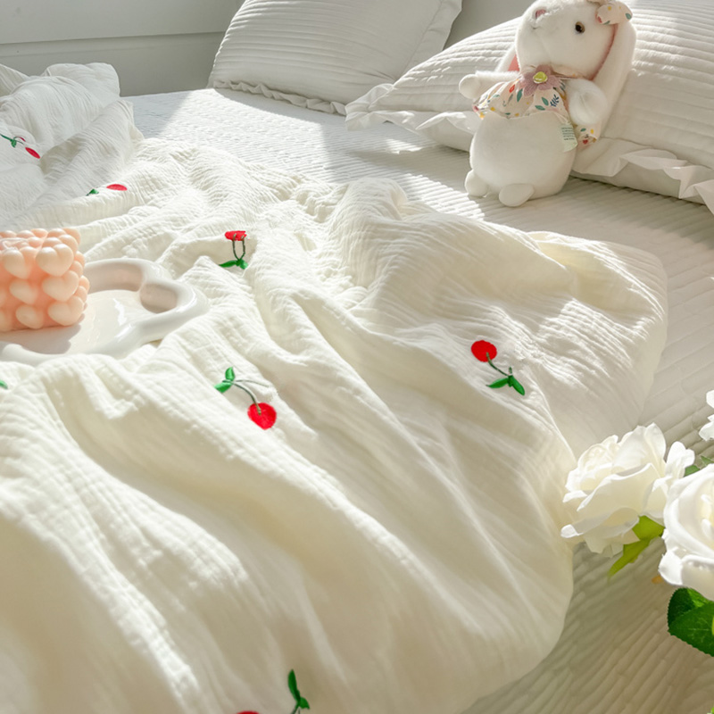 商品名称:盼季2023新款双层纱小清新超软糯夏被夏凉被夏季空调被薄被子被芯 ins-樱桃