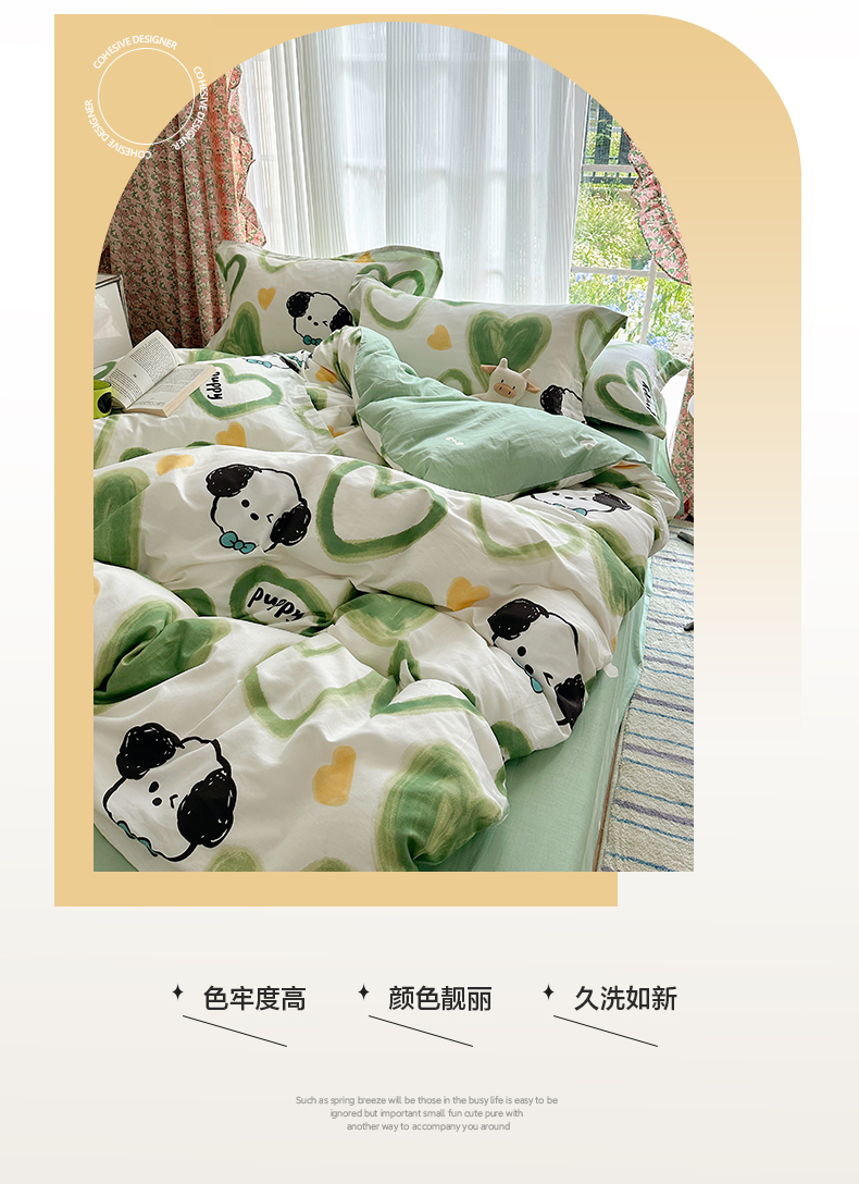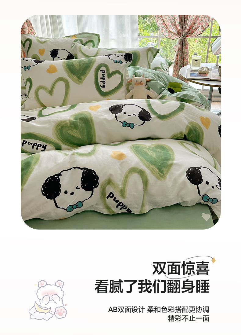 盛馨家纺 全棉喷气纯棉床笠印花简约田园风三件套四件套 快乐小狗