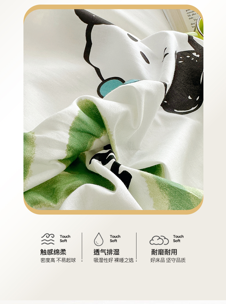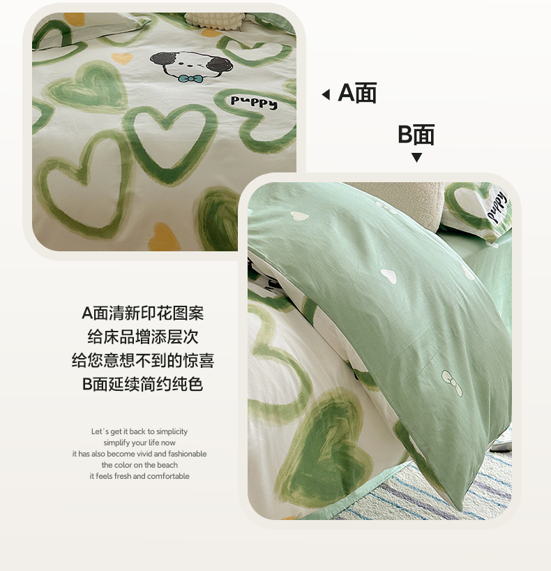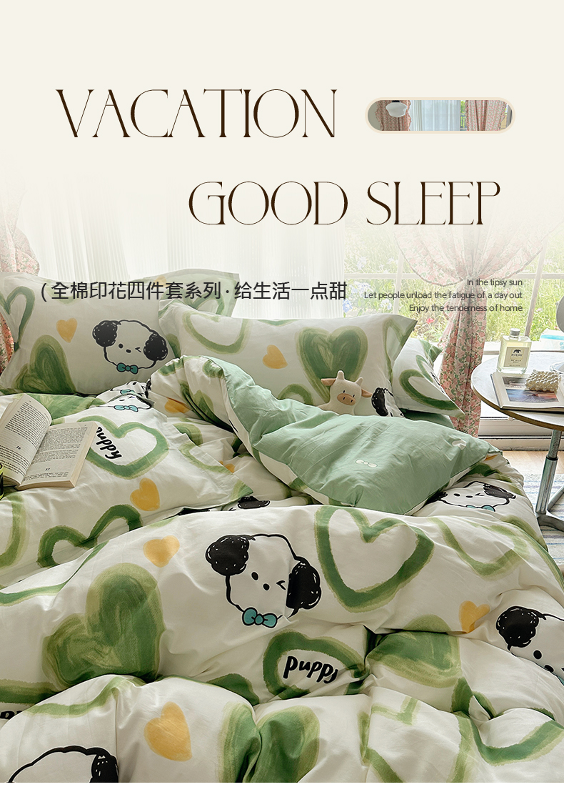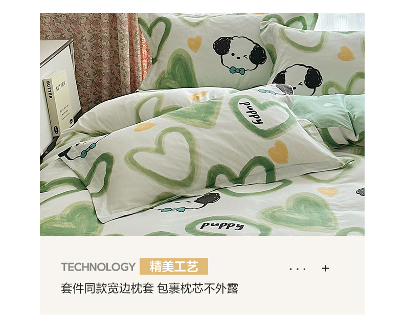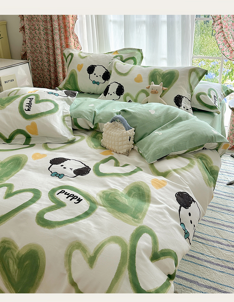 商品名称:盛馨家纺 全棉喷气纯棉床笠印花简约田园风三件套四件套 快乐小狗