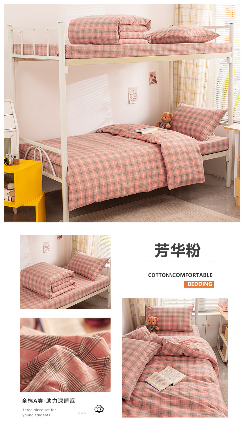 当前位置: 91家纺网 > 商品网购 > 床品套件 > 四件套 > 全棉普通四件套 > 柠萌 A类全棉色织水洗棉简约条纹格子学生季宿舍上下铺三件套 芳华粉