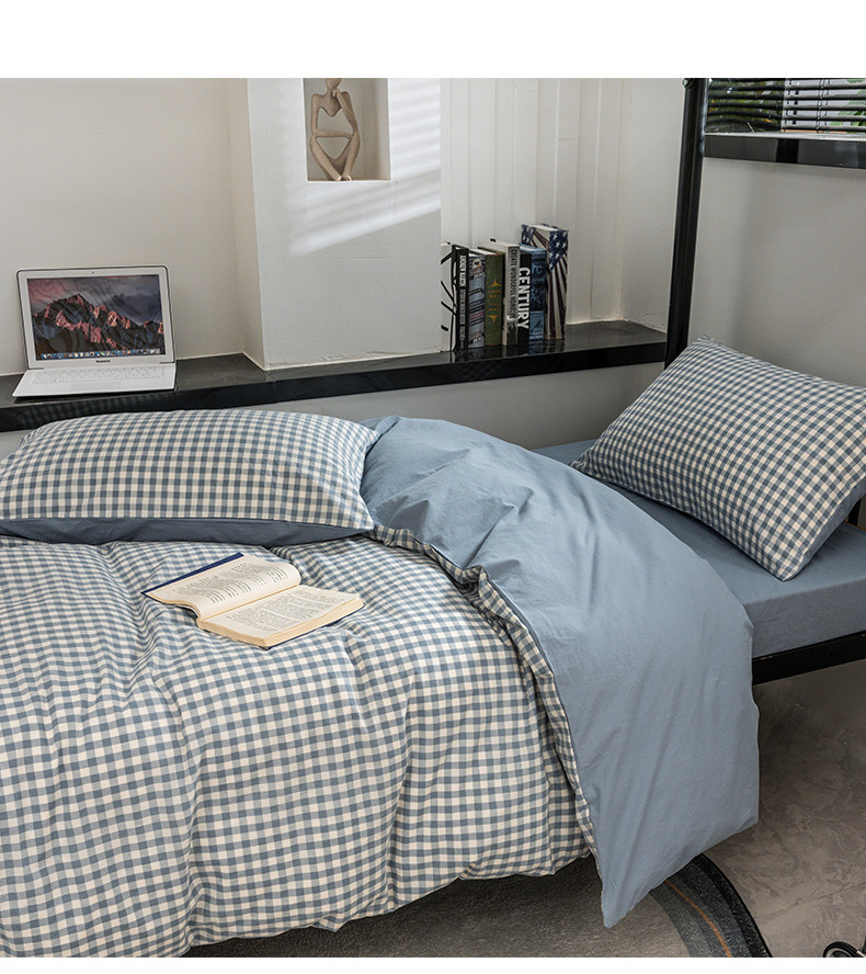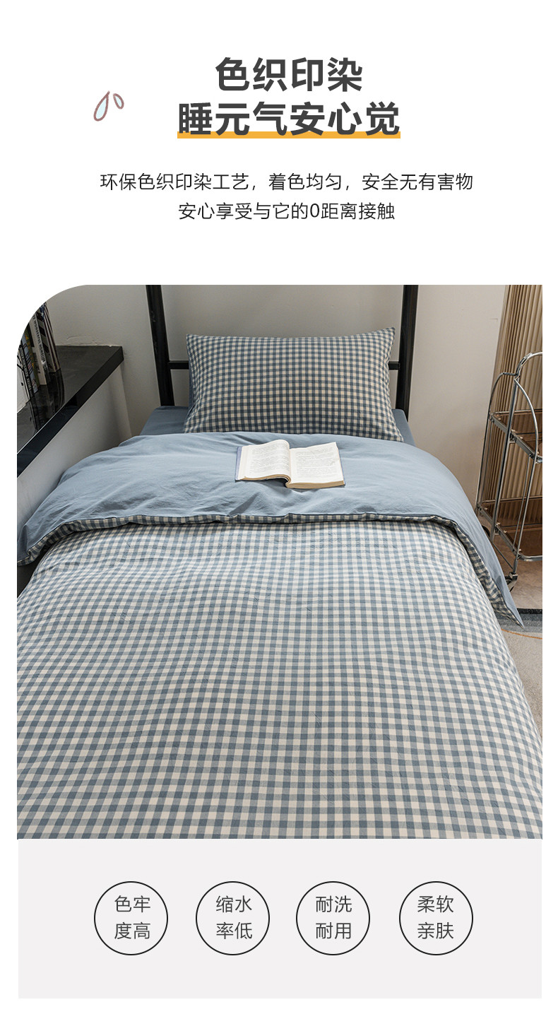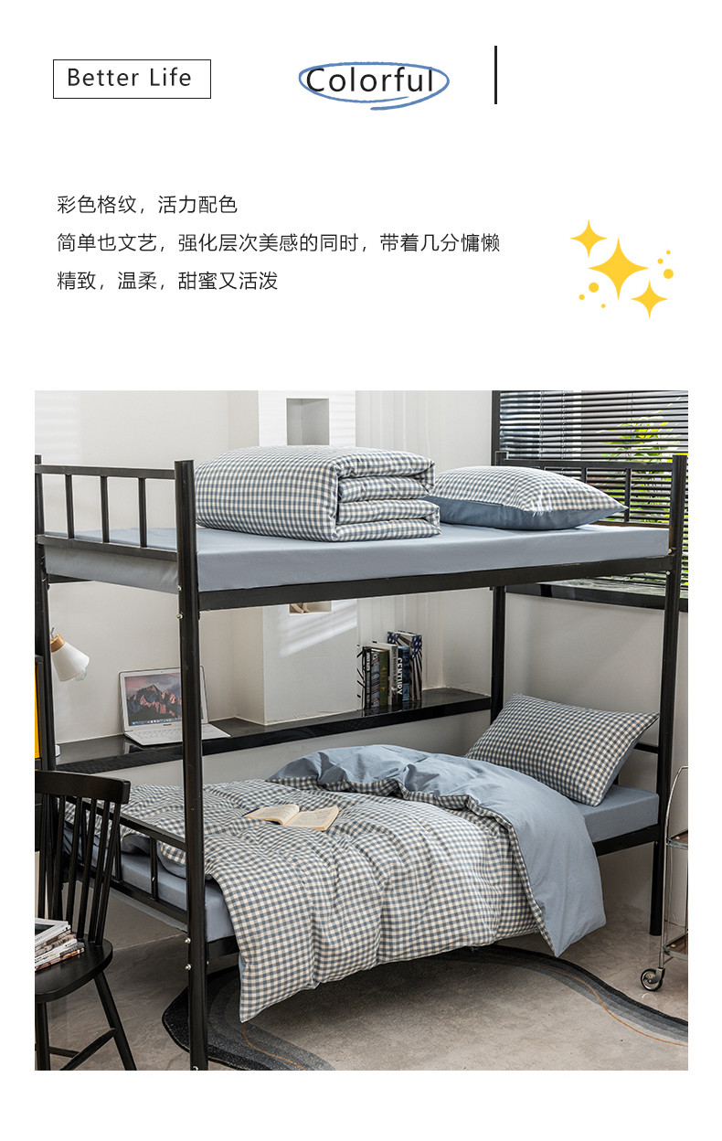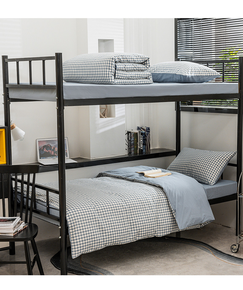 当前位置: 91家纺网 > 商品网购 > 床品套件 > 四件套 > 水洗棉四件套 > 柠萌 2025新款A类色织水洗棉学生简约上下铺宿舍三件套 蓝小格
