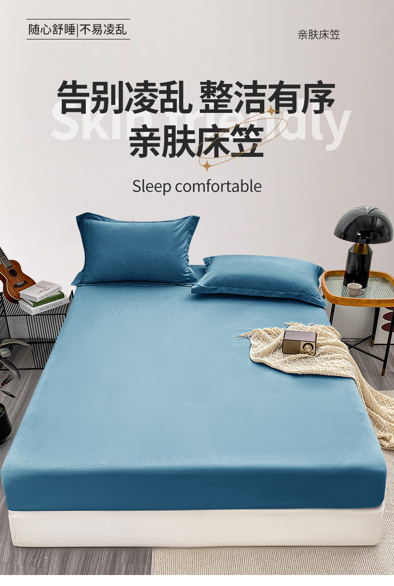 恬澳家纺 2024新款实拍风单床笠 深海蓝
