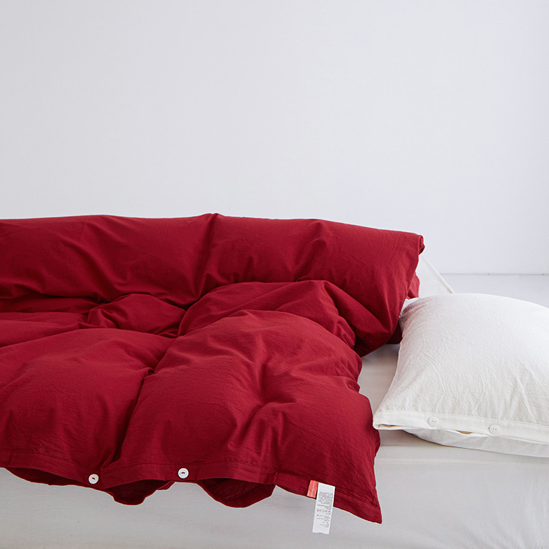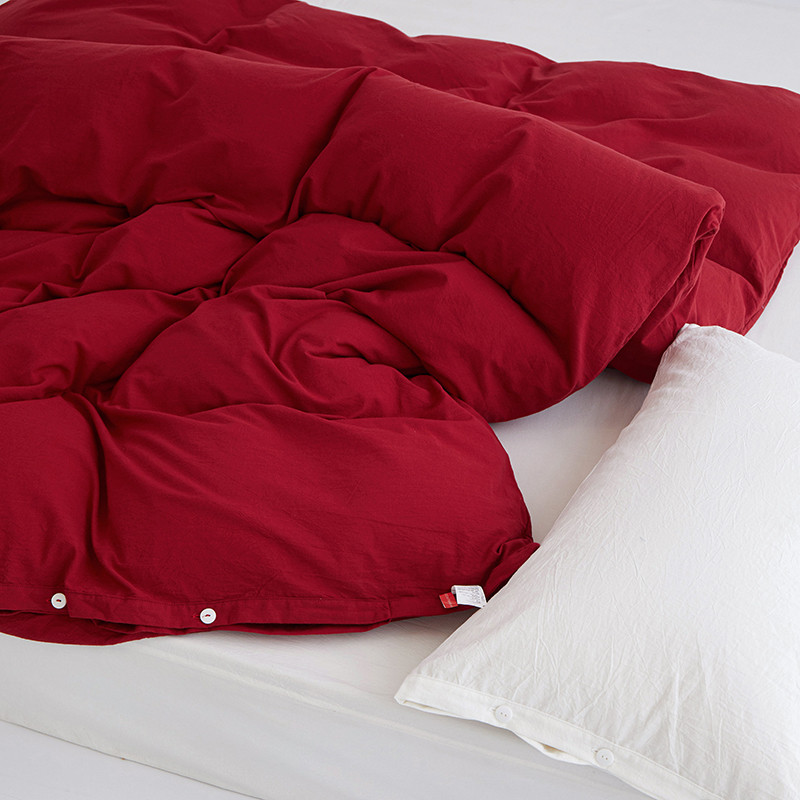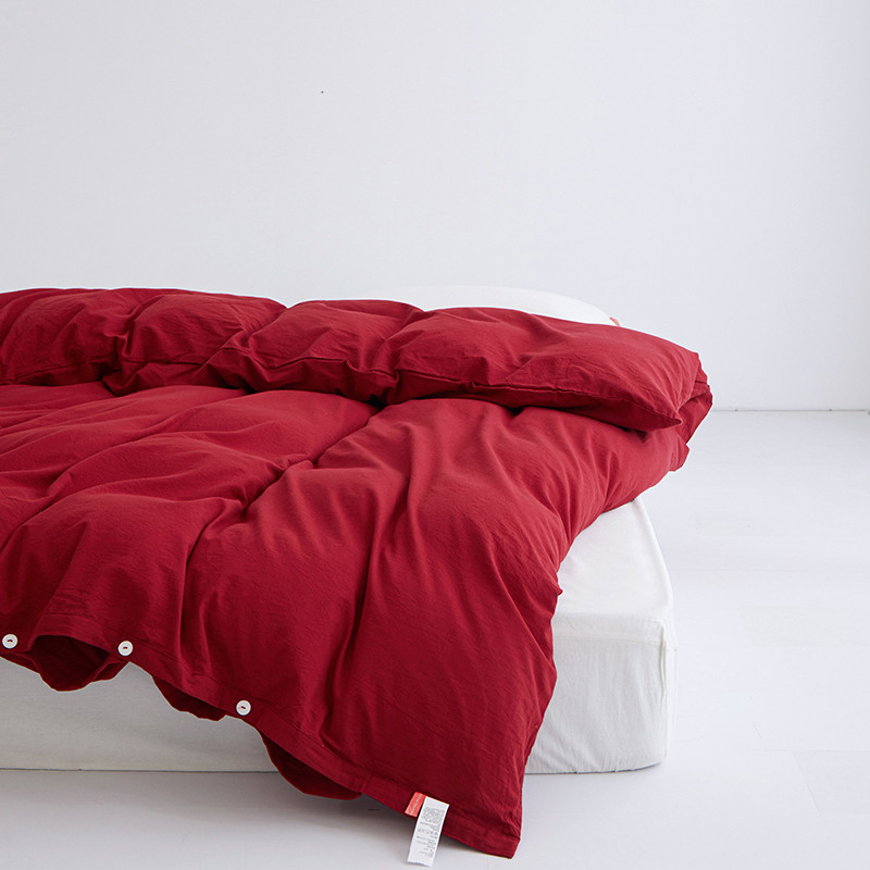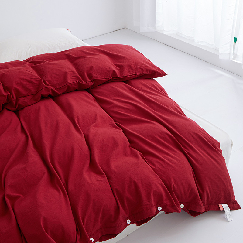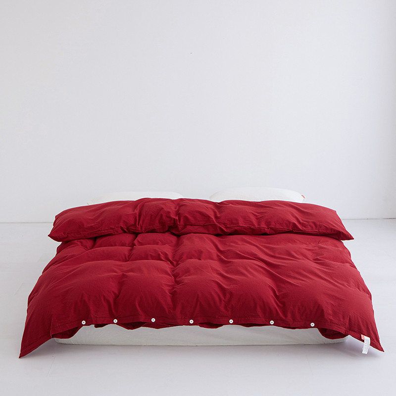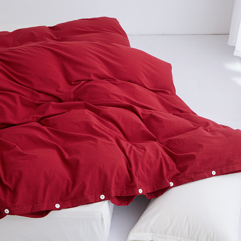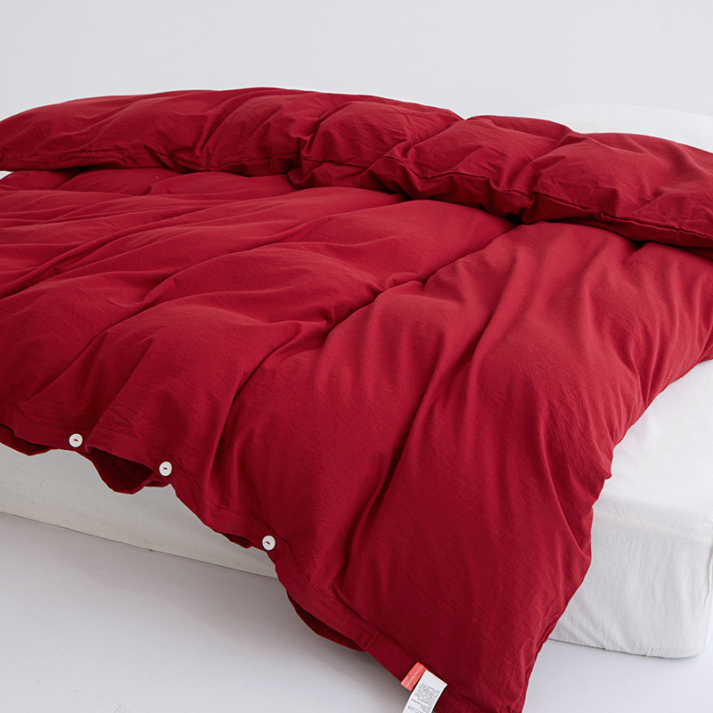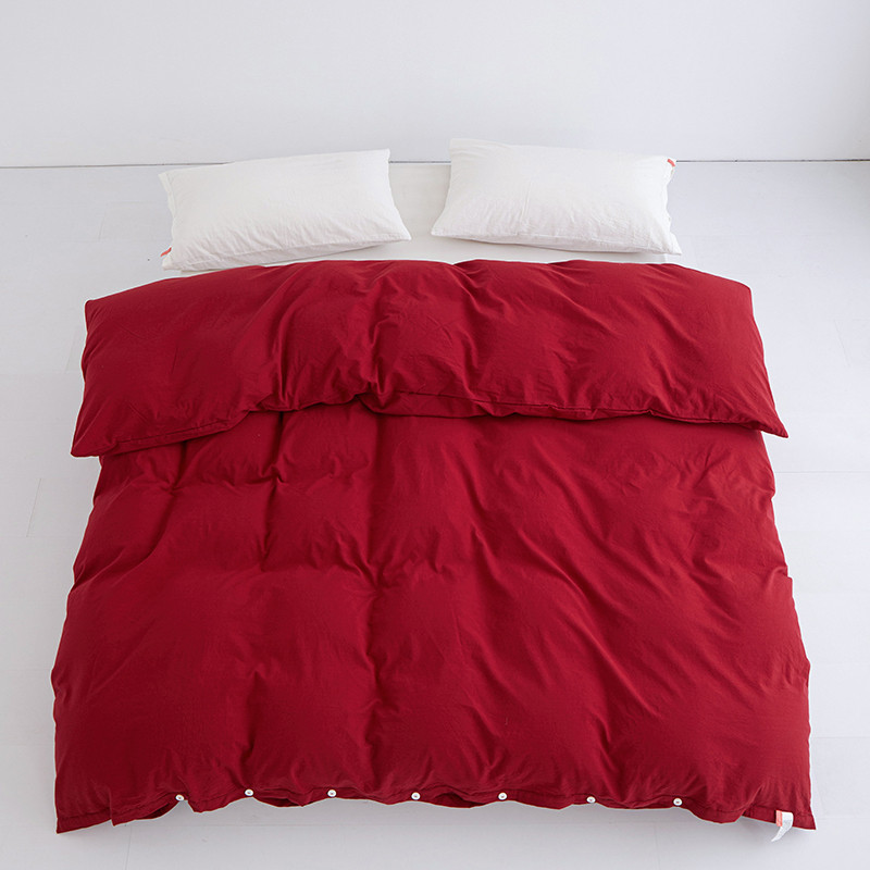 商品名称:安莱生活 2023新款水洗棉全棉色织高支高密纽扣款工艺单品被套 大红
