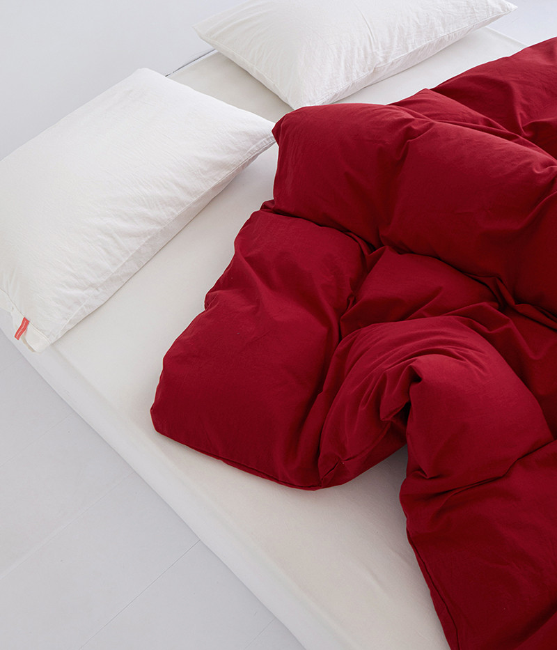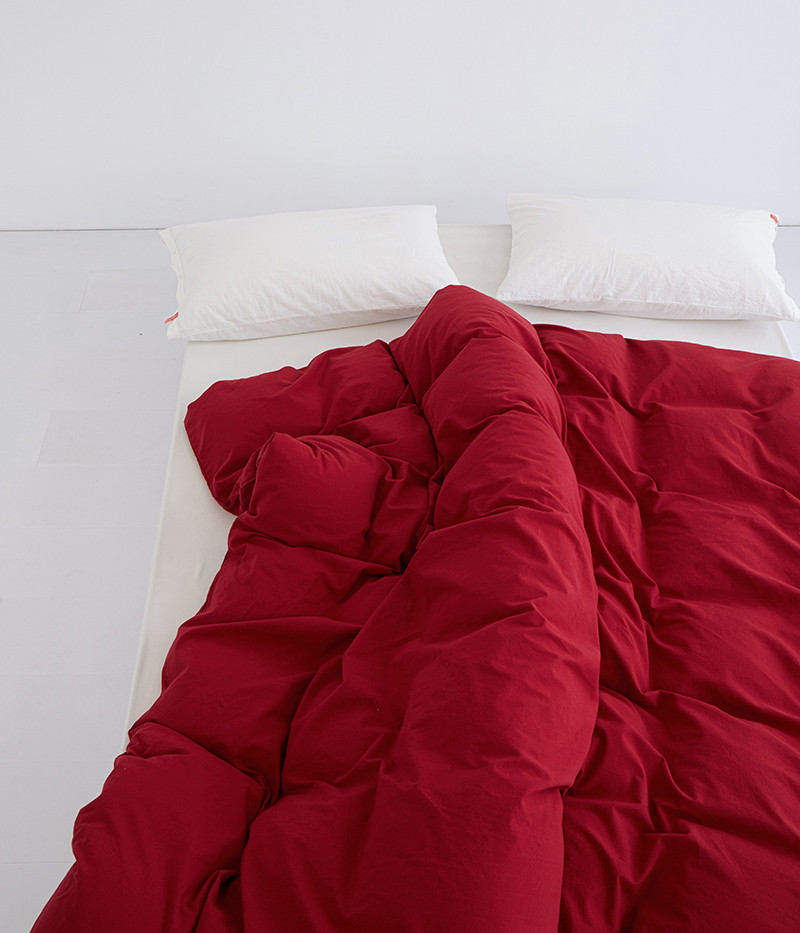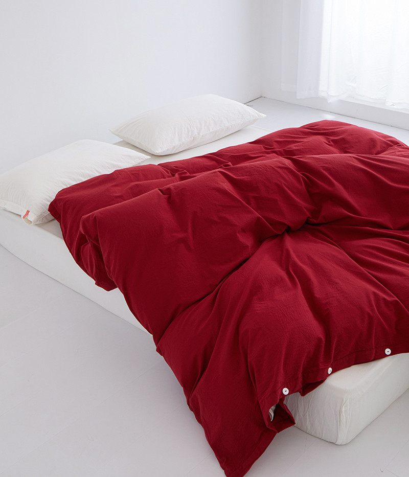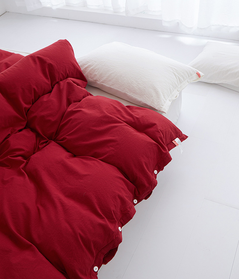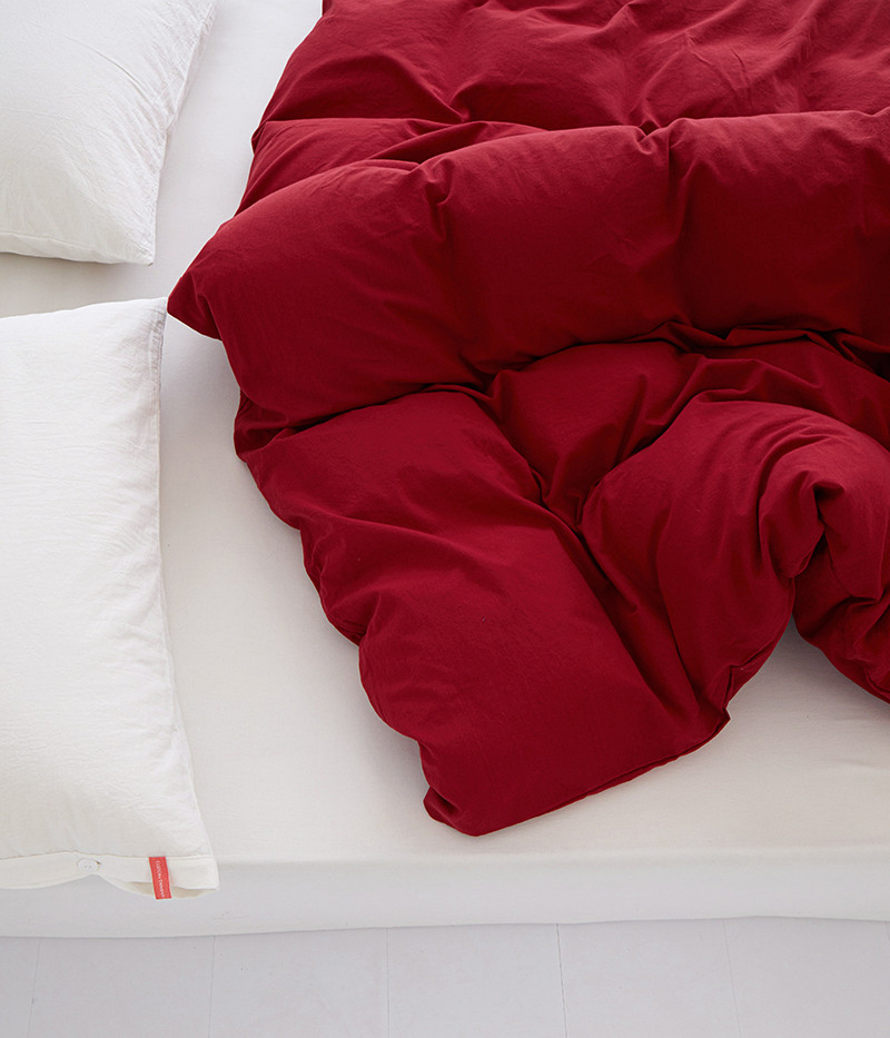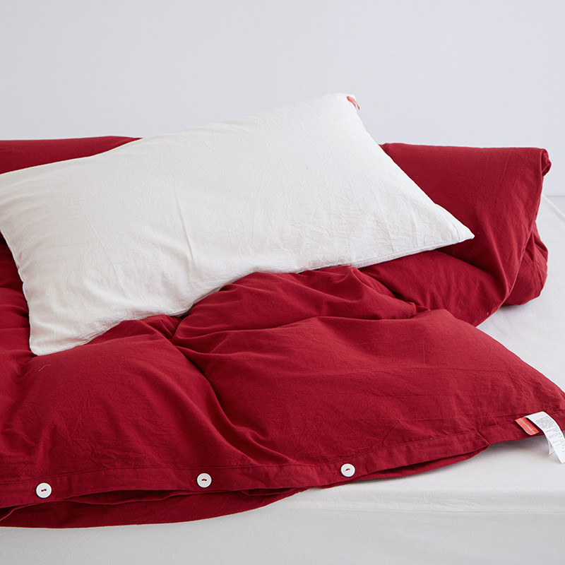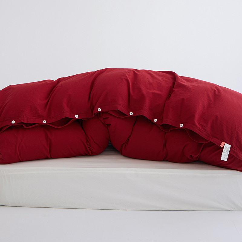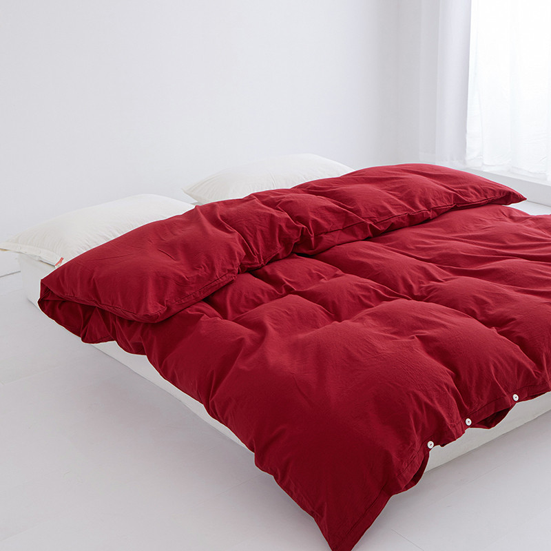 商品名称:安莱生活 2023新款水洗棉全棉色织高支高密纽扣款工艺单品被套 大红