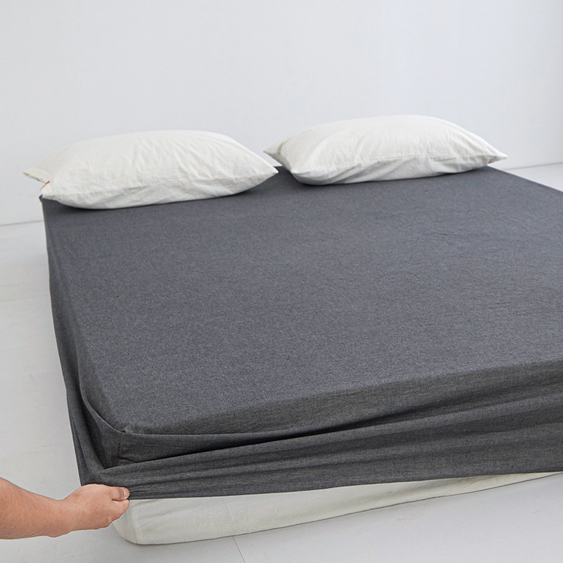 商品名称:安莱生活 2023新款水洗棉全棉色织高支高密纽扣款工艺单品床笠 深灰
