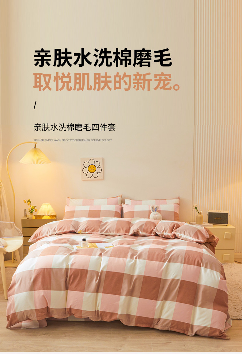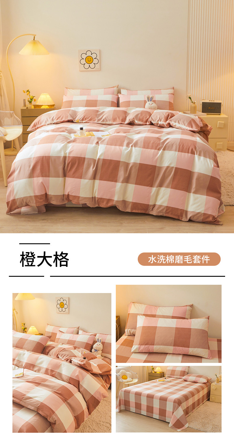 当前位置: 91家纺网 > 商品网购 > 床品套件 > 四件套 > 水洗棉四件套 > 邵依 2025新款水洗棉磨毛非全棉纯棉纯色素色四件套 橙大格