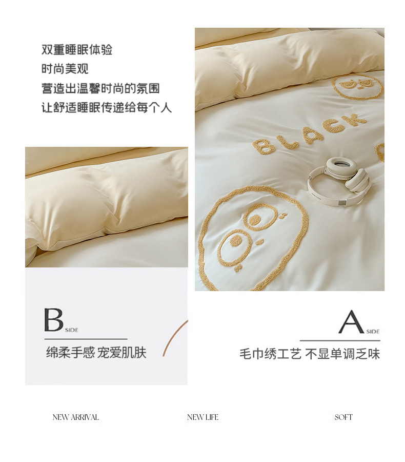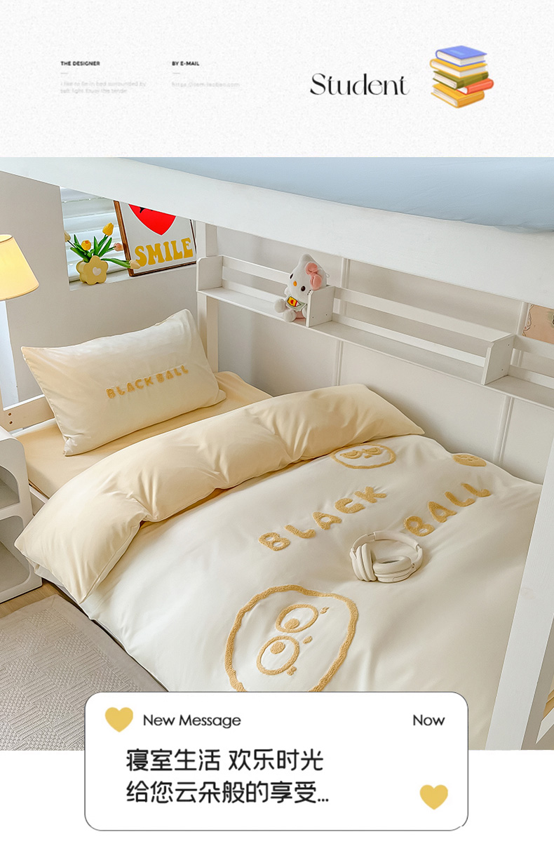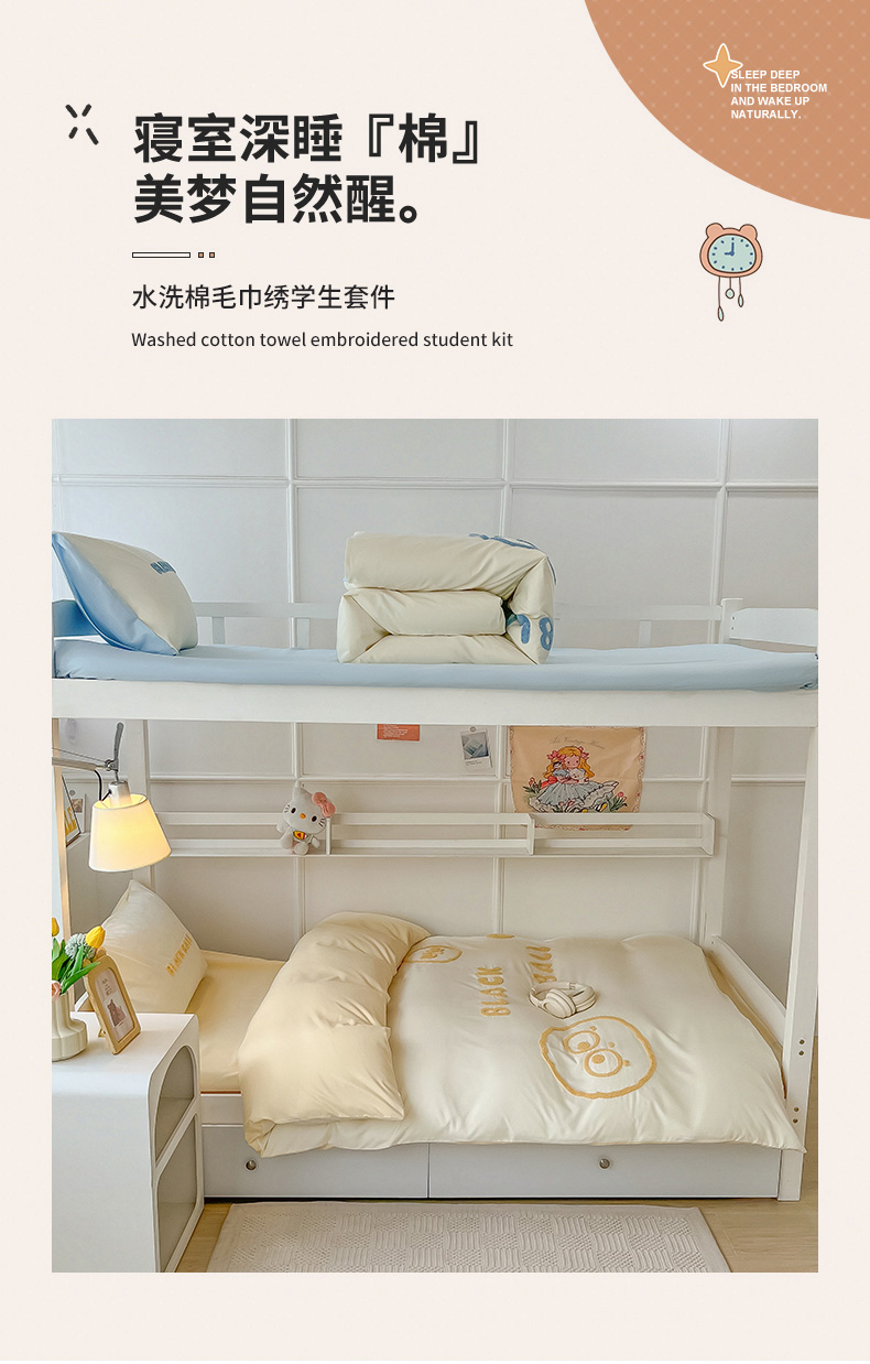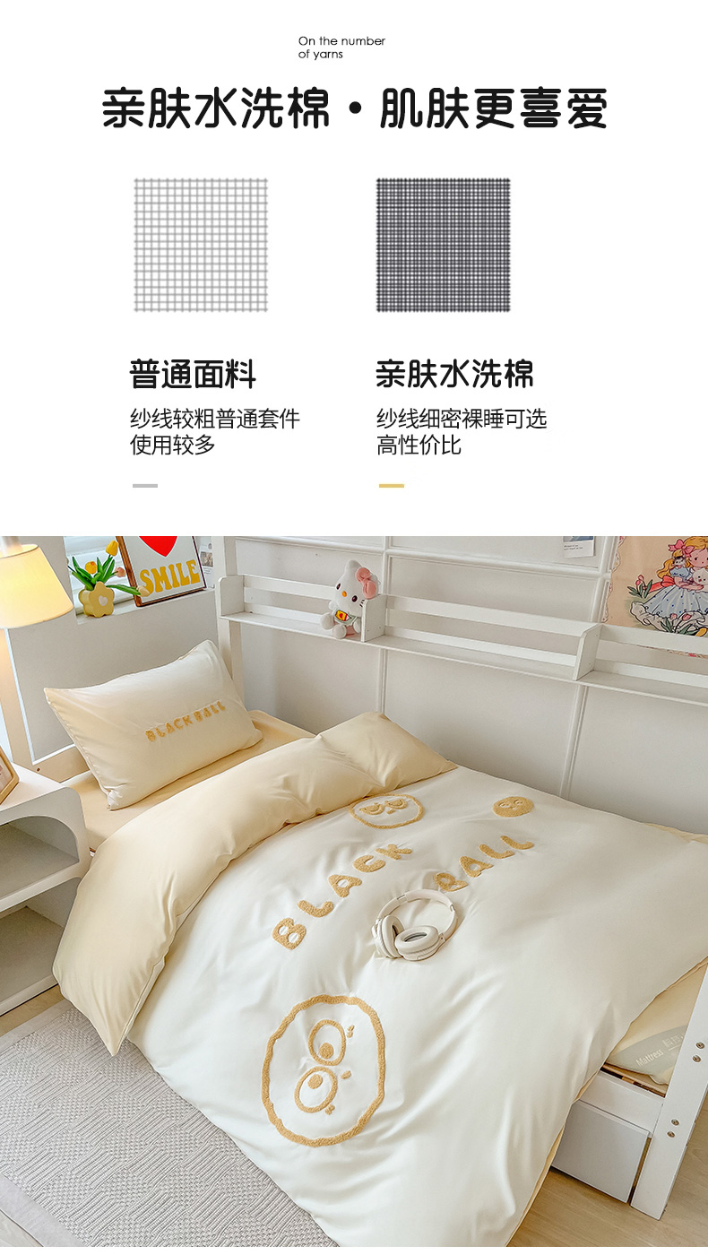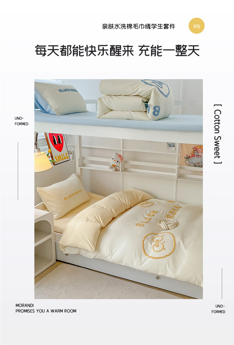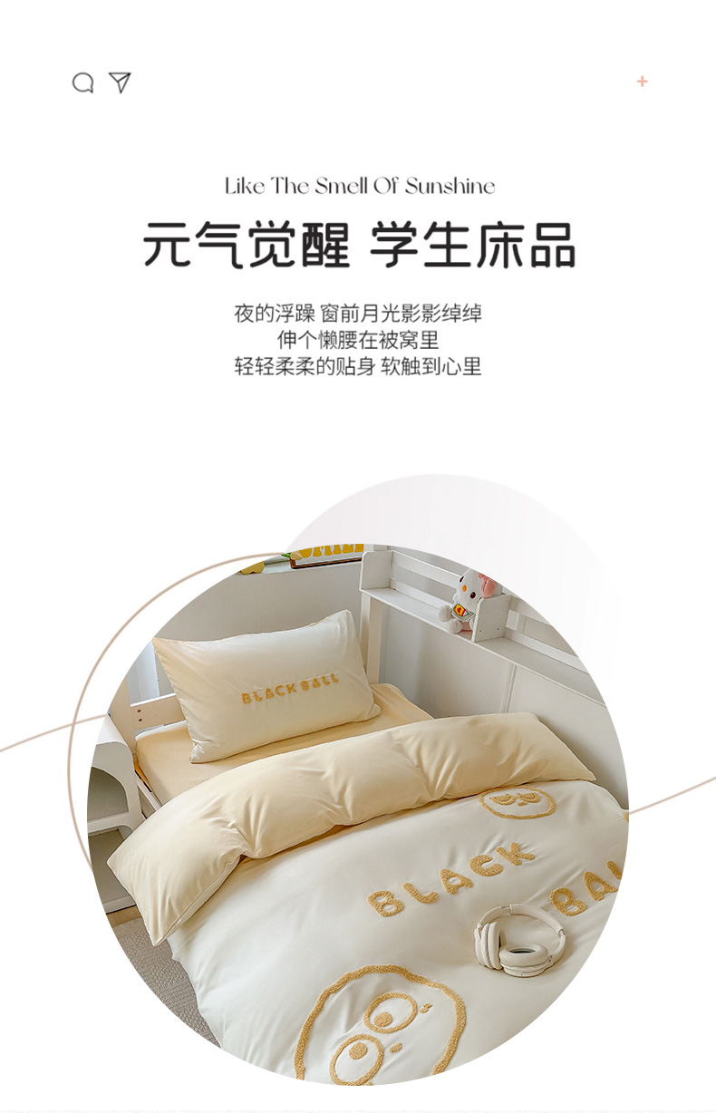 当前位置: 91家纺网 > 商品网购 > 床品套件 > 四件套 > 水洗棉四件套 > 眠帛 2023新款水洗棉毛巾绣煤球系列学生三件套六件套 煤球奶黄