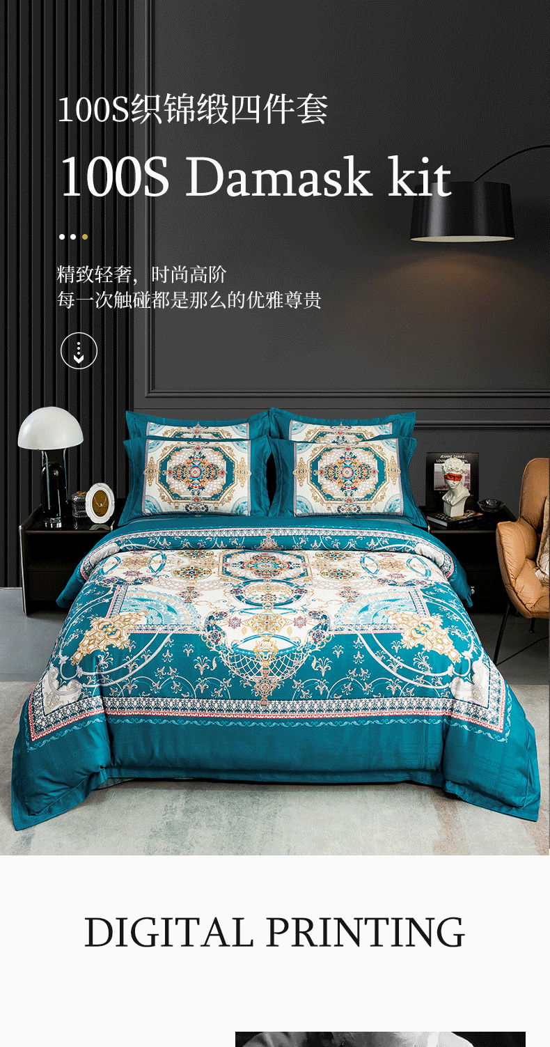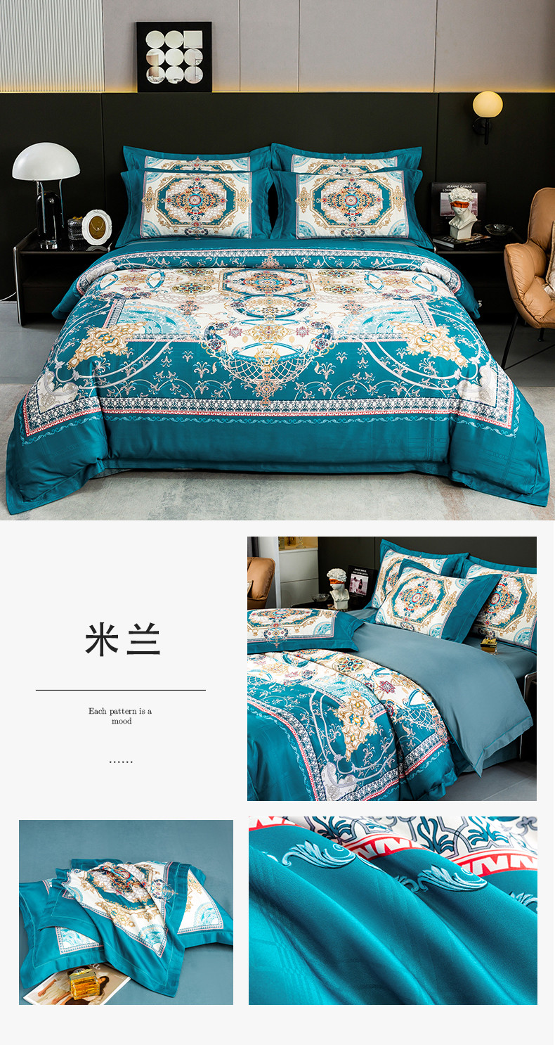 莱欧纳 2025新款100s织锦缎大版提花四件套 米兰