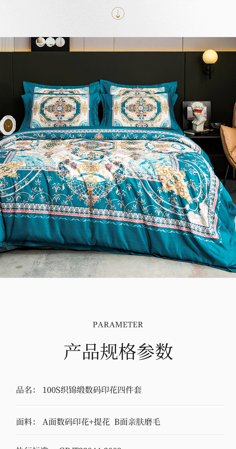 商品名称:莱欧纳 2025新款100s织锦缎大版提花四件套 米兰