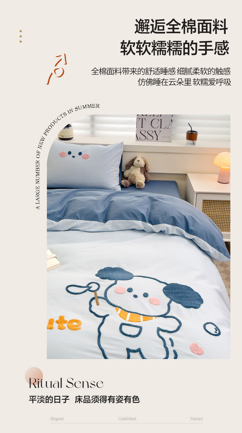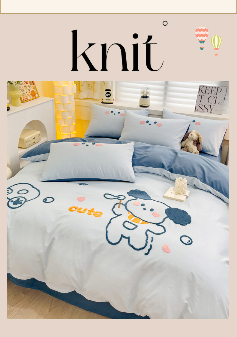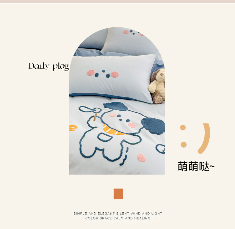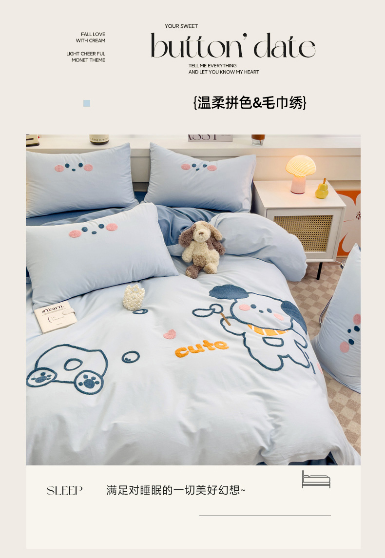 (总)丽涵家纺 2026新款50S全棉纯棉水洗棉毛巾绣花四件套幸运圣诞,动物乐园,可爱小狗-浅粉,小狗派对,幸运圣诞树,熊猫嘟嘟,可爱小狗-蓝
