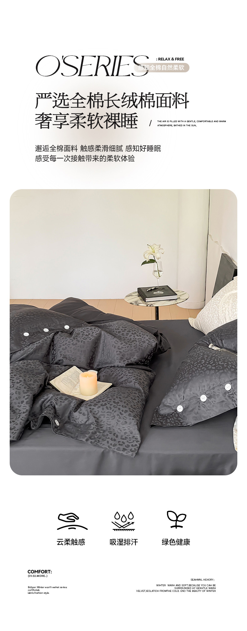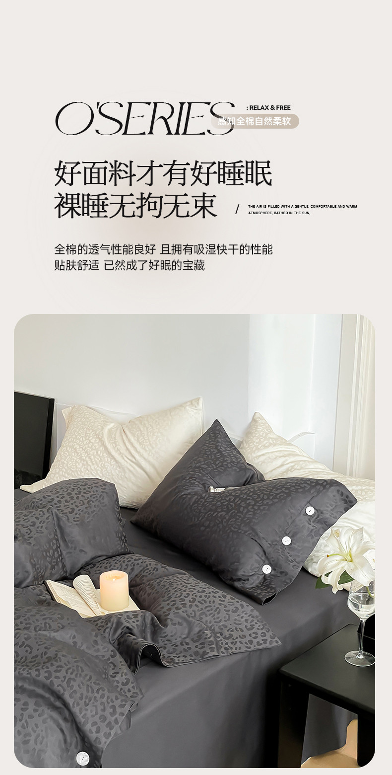 当前位置: 91家纺网 > 商品网购 > 床品套件 > 四件套 > 长绒棉四件套 > (总)华超针织 2023新款觅豹系列100支长绒棉提花四件套