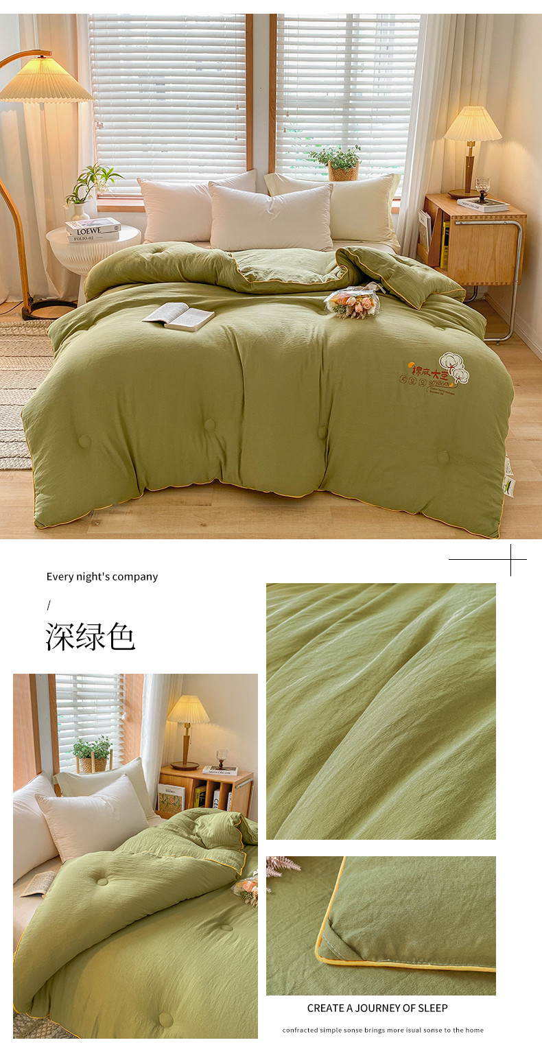 • 91家纺网 家纺一手货源 找家纺 亚龙工厂店 2023新款双层纱棉麻纯色大豆被被子被芯 绿色