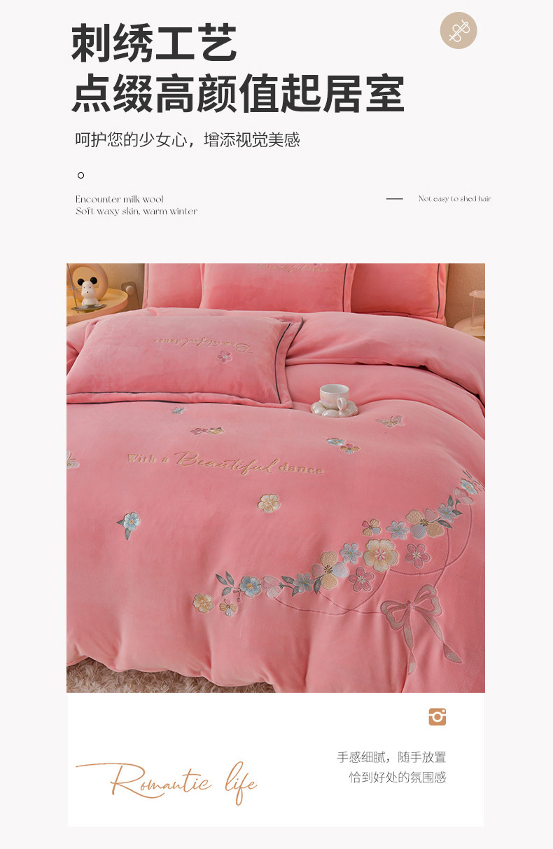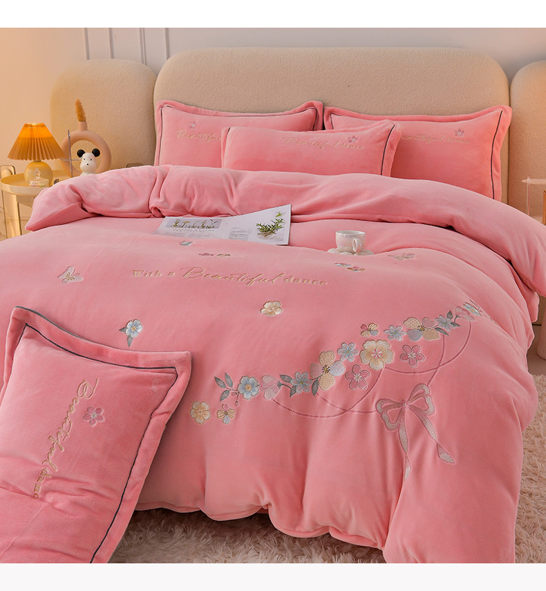 喜梦缘家纺 2025新款花海系列牛奶绒绣花四件套 花海-樱花粉