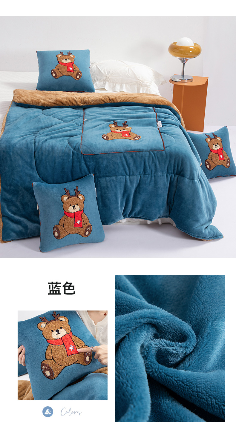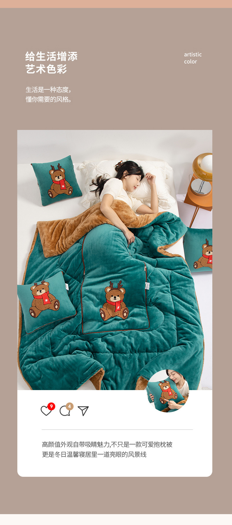 商品名称:宝马家纺2023新款泰迪熊圣诞限量版毛巾绣抱枕被 水绿
