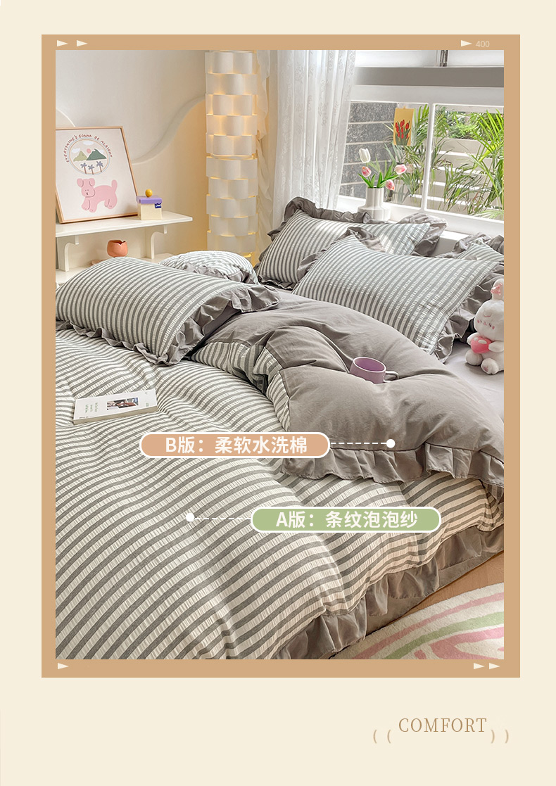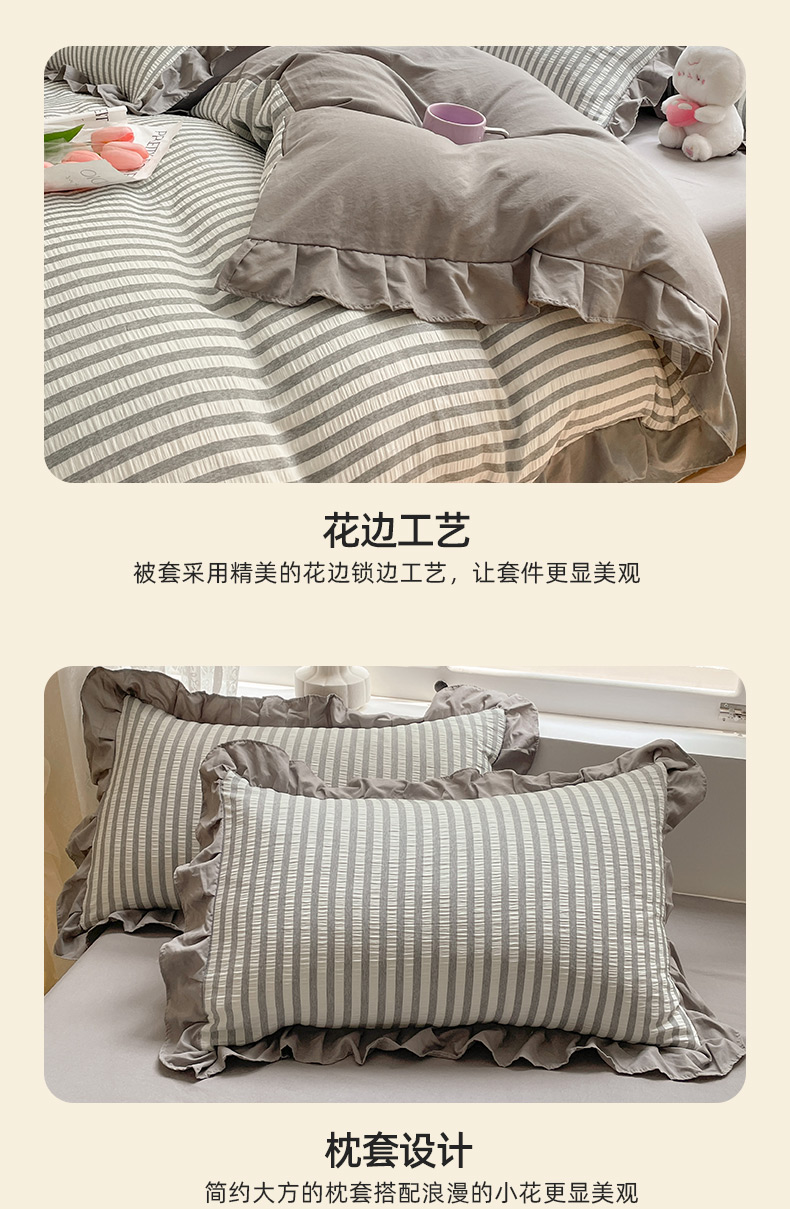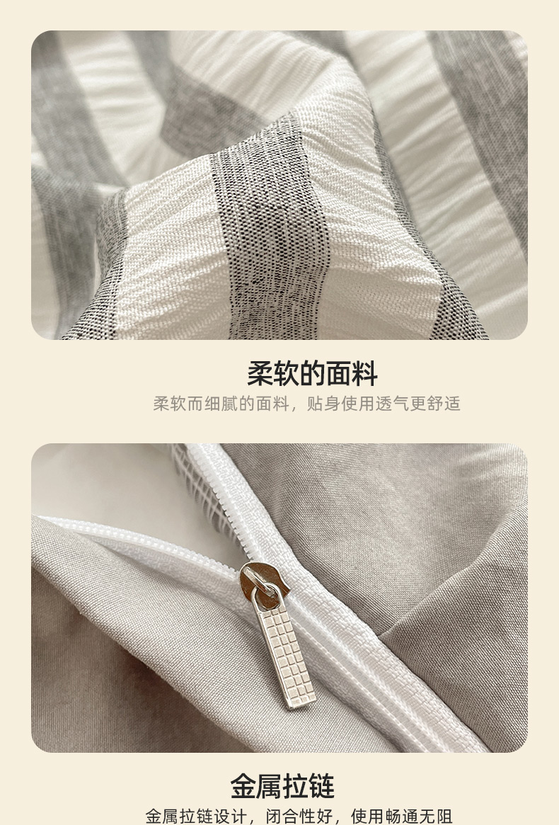 商品名称:ab家纺 2023新品竖条纹泡泡纱四件套 泡泡纱- 浅灰