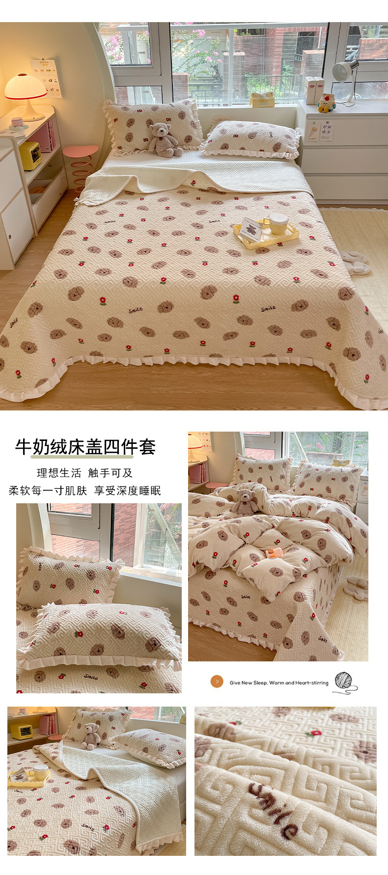 当前位置: 91家纺网 > 商品网购 > 床品套件 > 三件套 > 索飞特牛奶绒夹棉绗缝床盖三件套四件套 咖啡狗