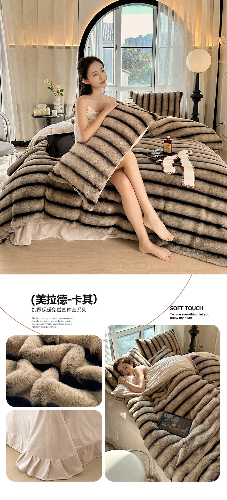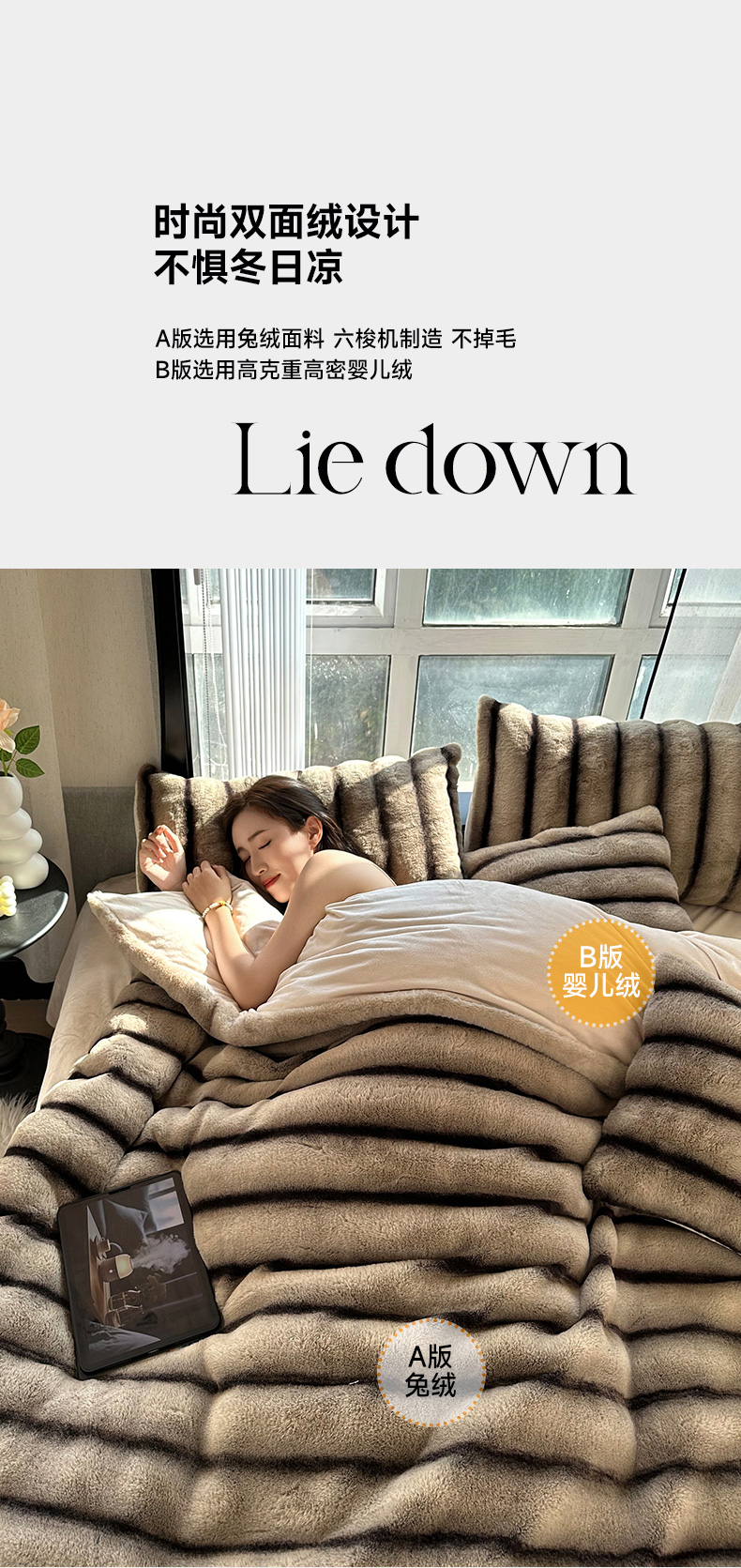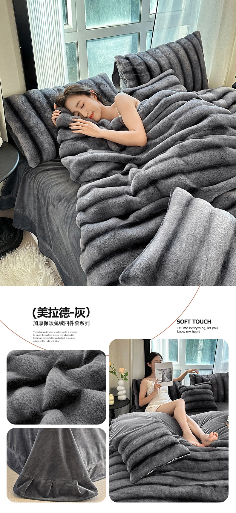2024美拉得高端A类高克重獭兔毛皮草双面加厚230克牛奶绒兔兔绒四件套