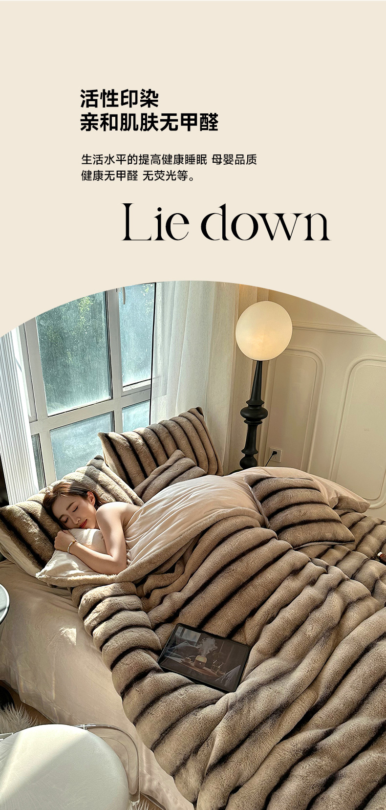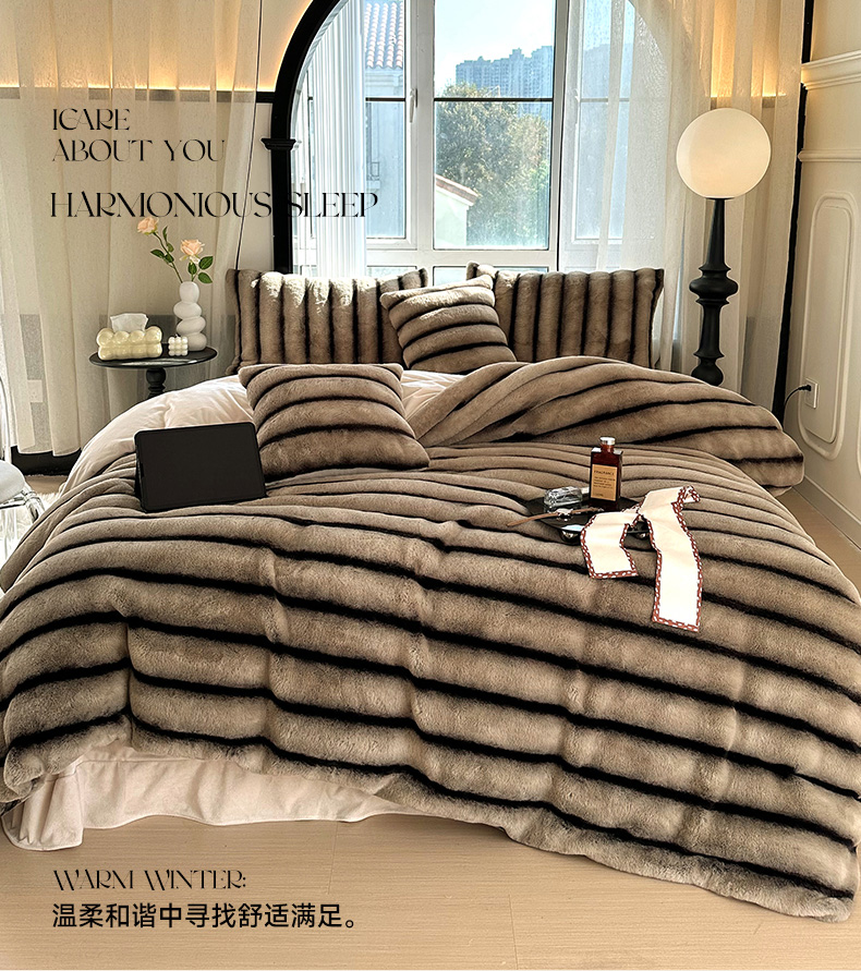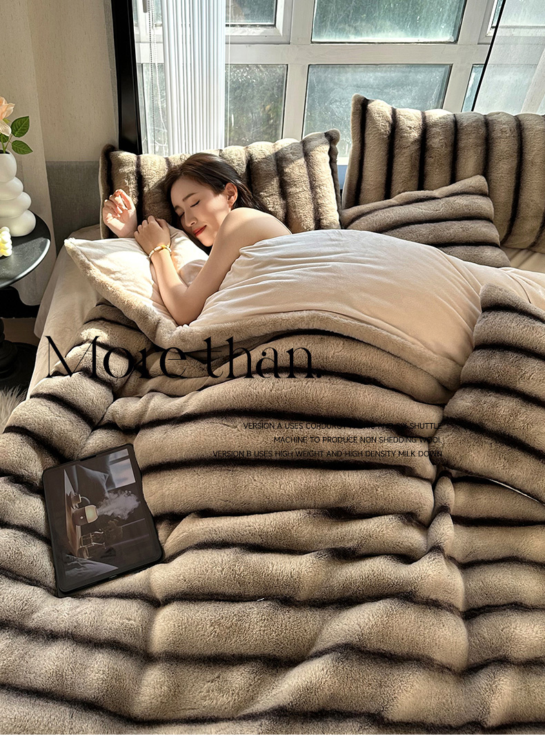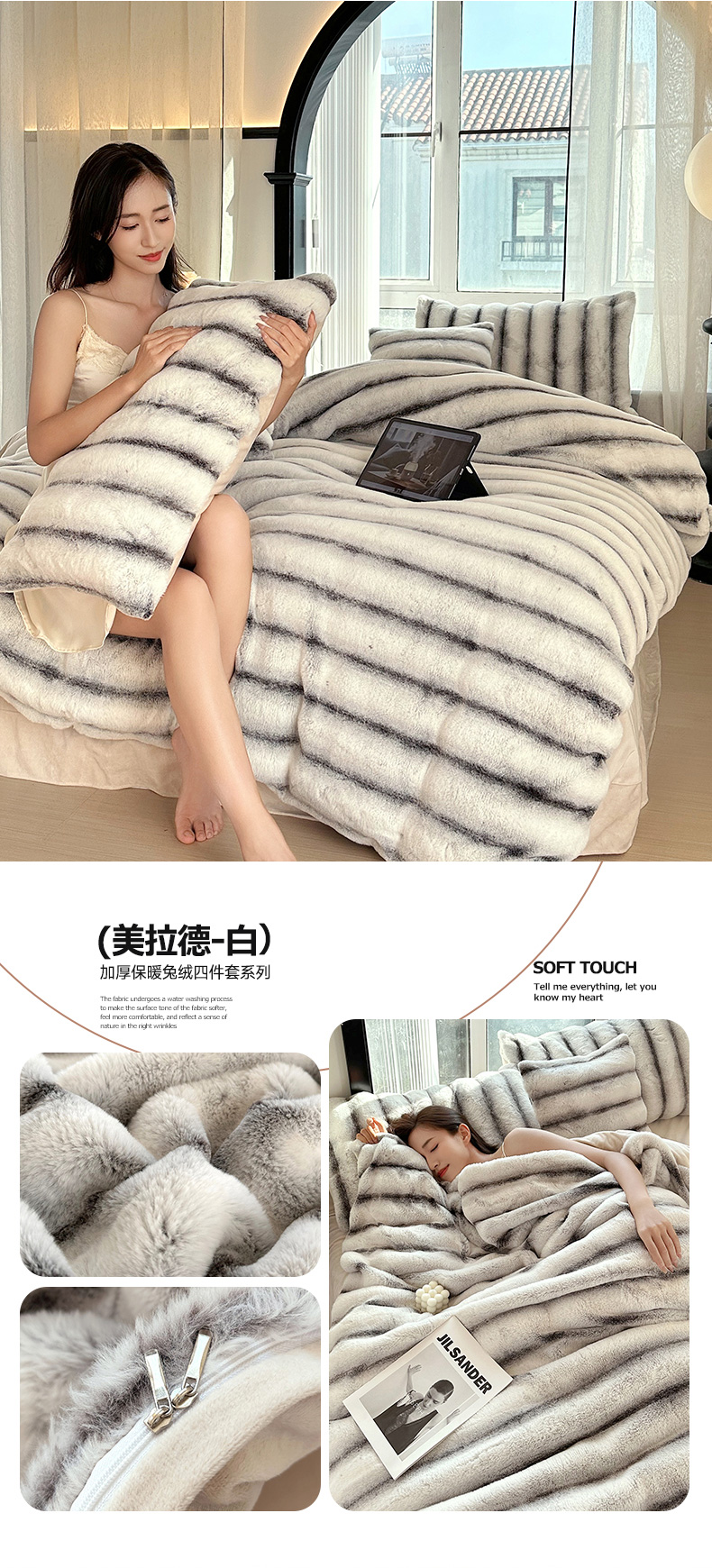 2024美拉得高端A类高克重獭兔毛皮草双面加厚230克牛奶绒兔兔绒四件套