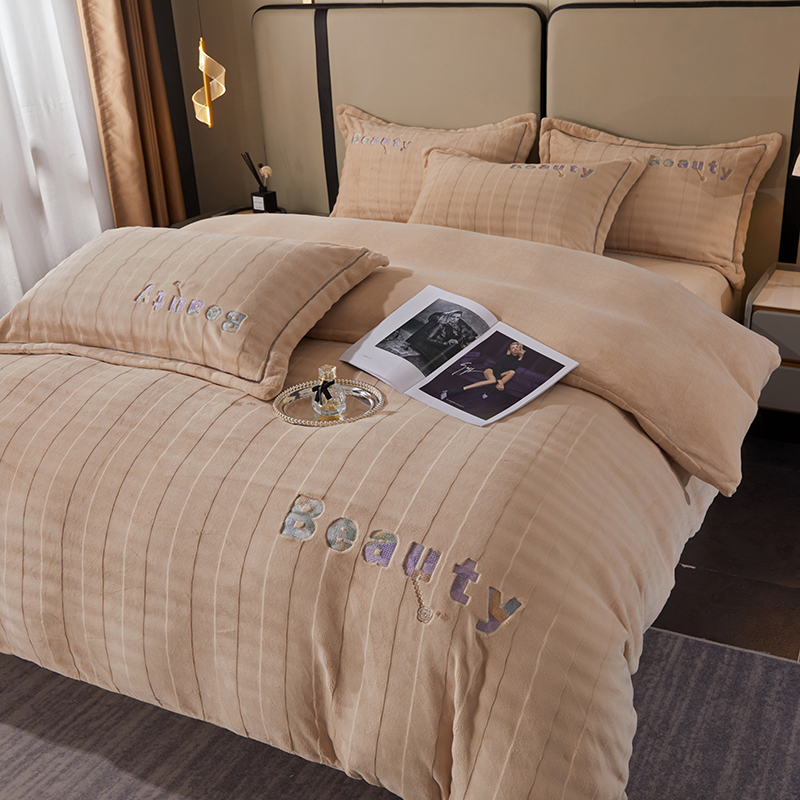 新款牛奶绒绣花款四件套系列 清仓价! 米色