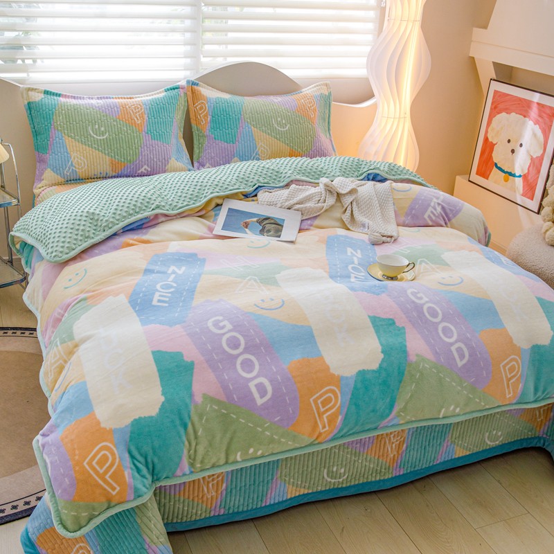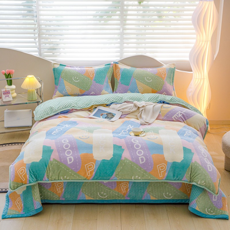(总)青竹苑2023新款床盖款四件套牛奶绒夹棉床盖宝宝绒豆豆学生三件套