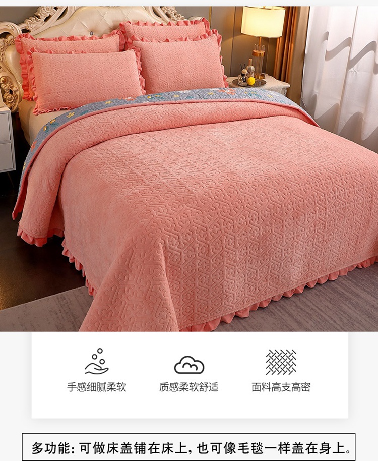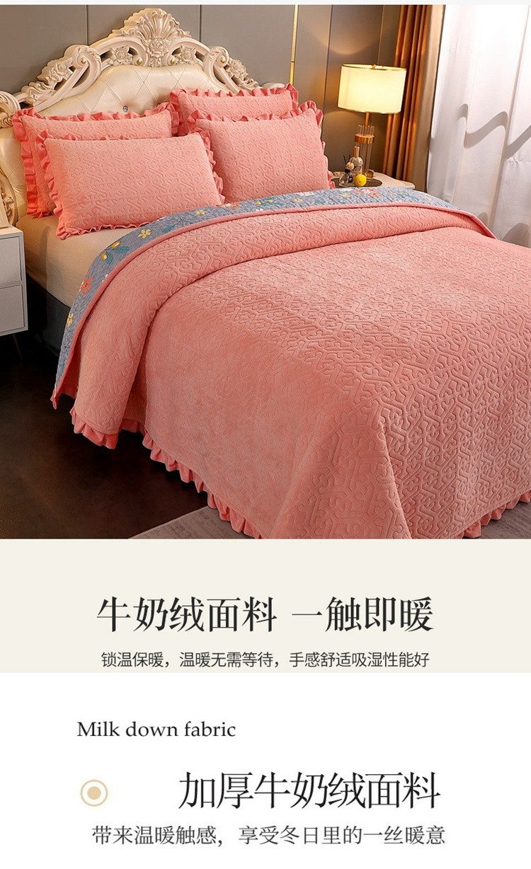 • 91家纺网 家纺一手货源 找家纺 2023新款纯色小花边牛奶绒床盖三件套 暖馨-玉色