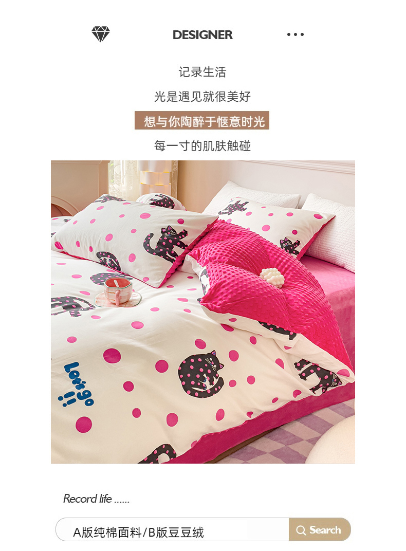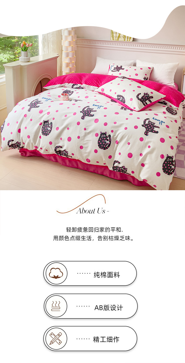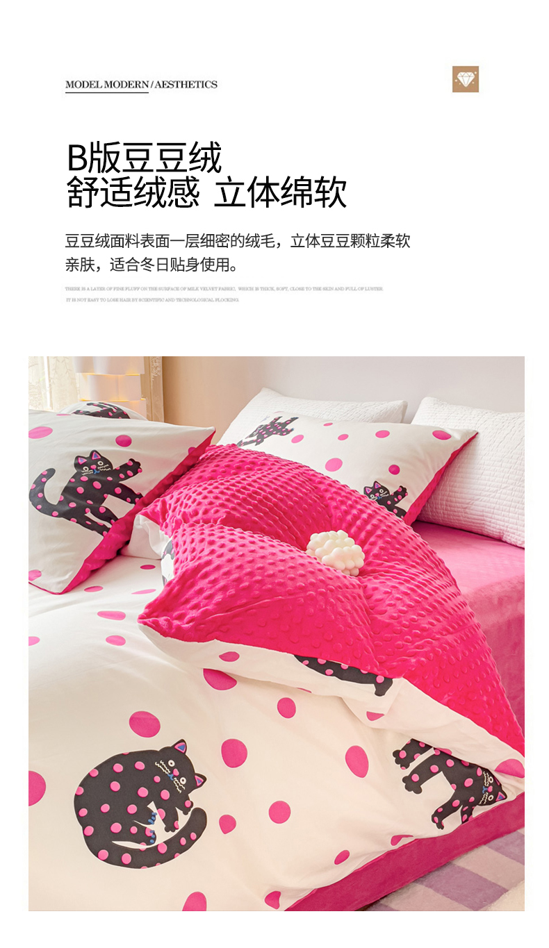 珺柔家纺 2023新款全棉加豆豆牛奶绒四件套 小美好