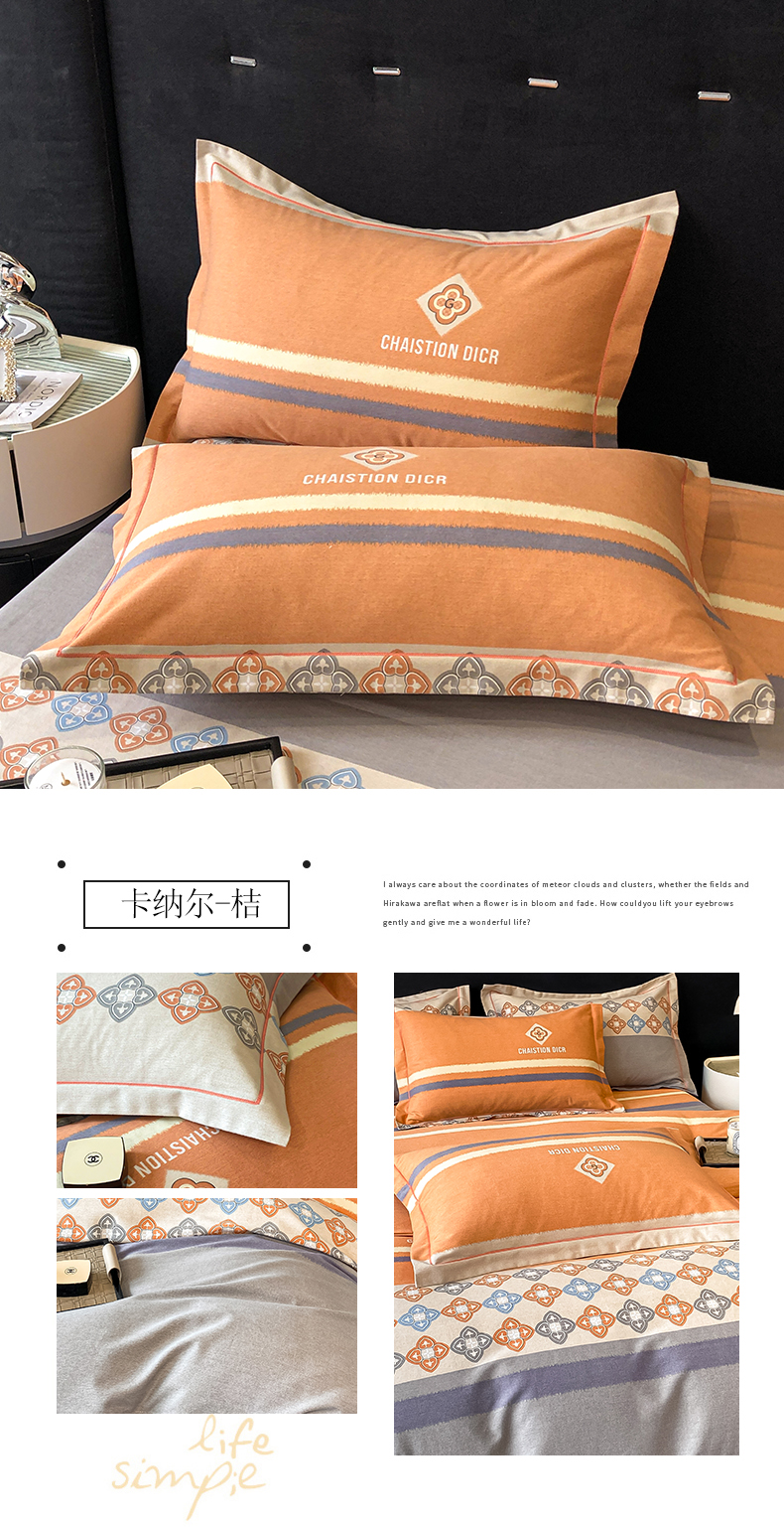 商品名称:铭成 2024新款全棉生态喷气加厚磨毛单品枕套 卡纳尔-桔