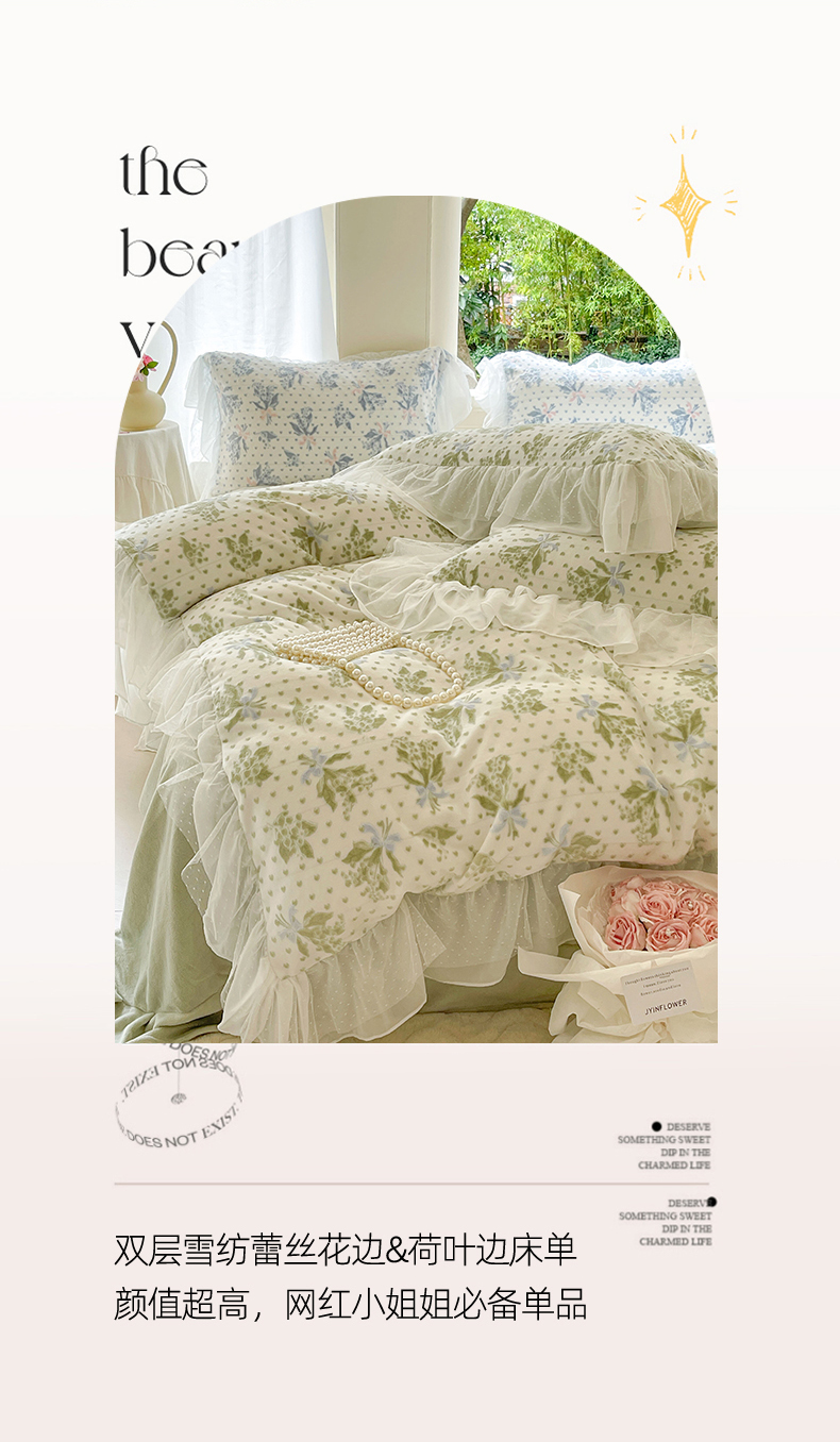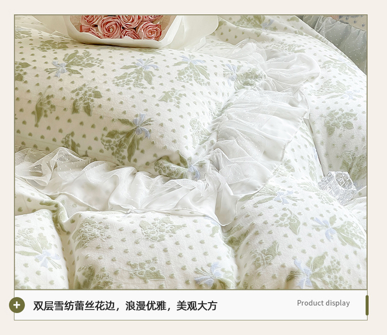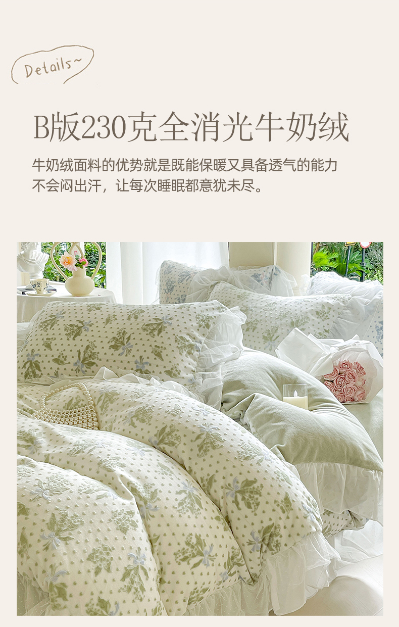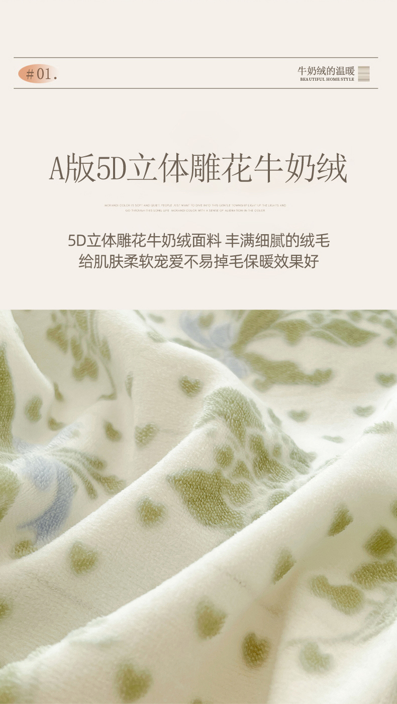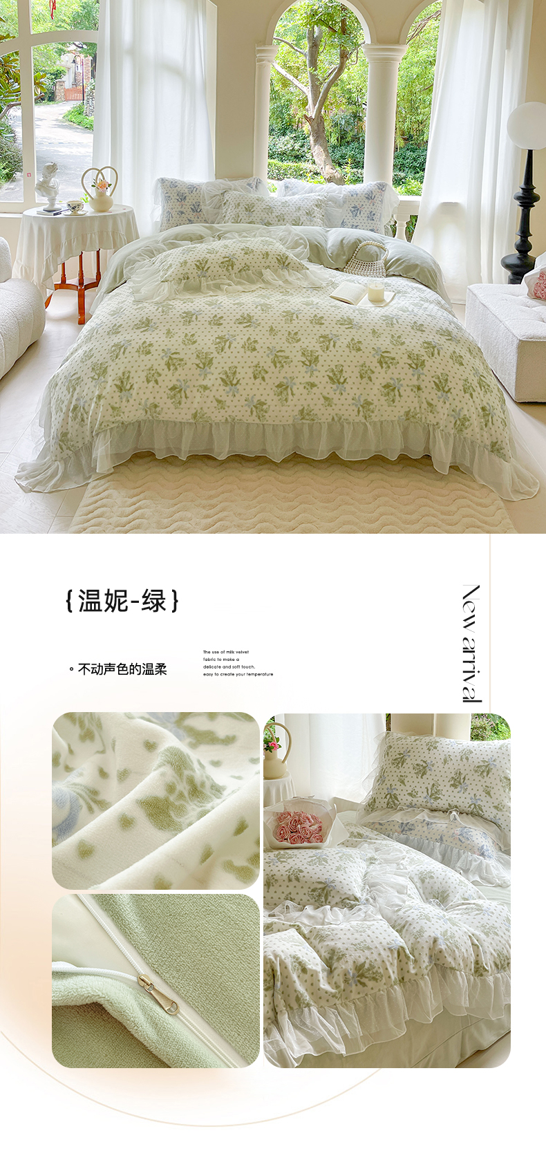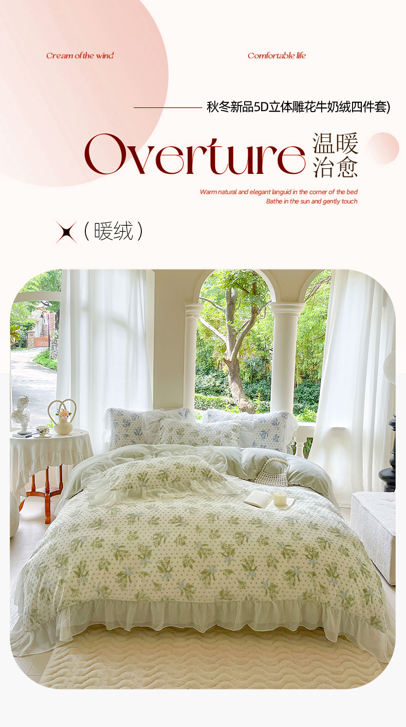 商品名称:玛奇朵2023新款秋冬新品5D立体雕花牛奶绒四件套 温妮-绿