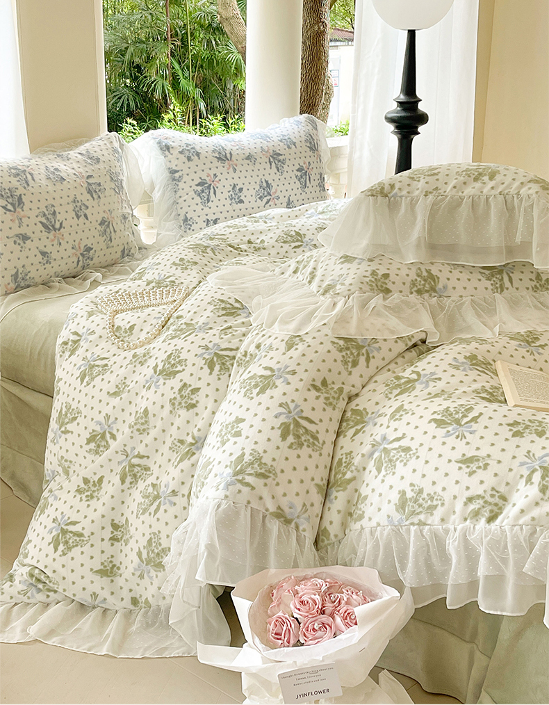 (总)玛奇朵 2025新款韩系少女全棉立体提花四件套-,青纱粉黛