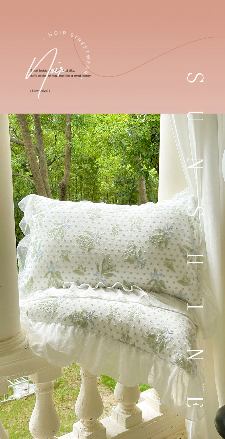 (总)玛奇朵 2023新品法式浪漫荷叶边60S华夫格大提花-凯伦系列,凯伦-白,凯伦-粉