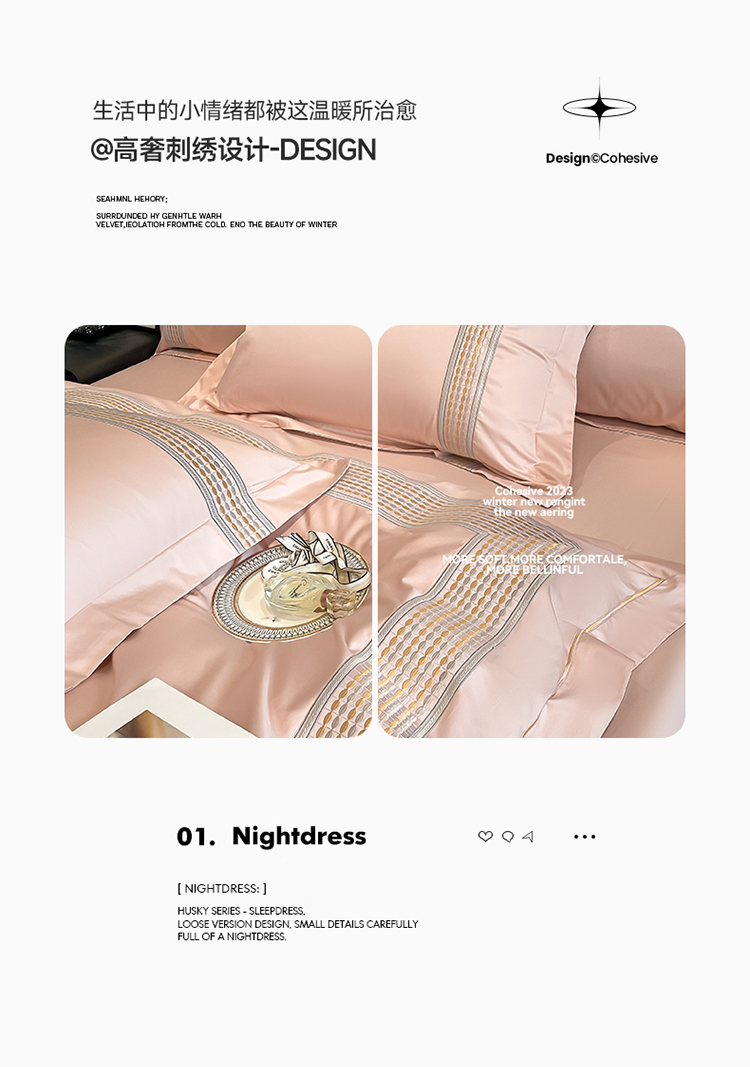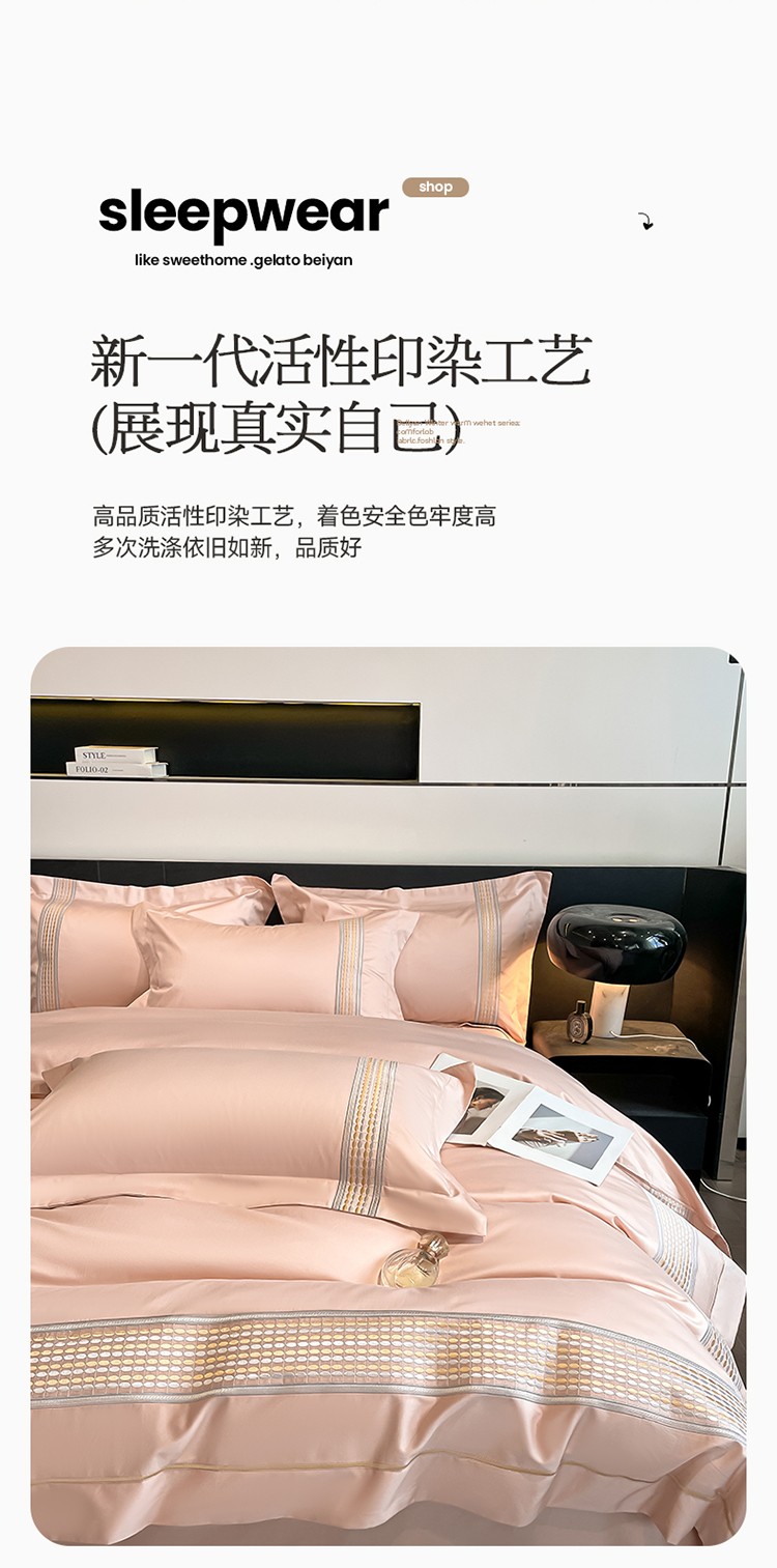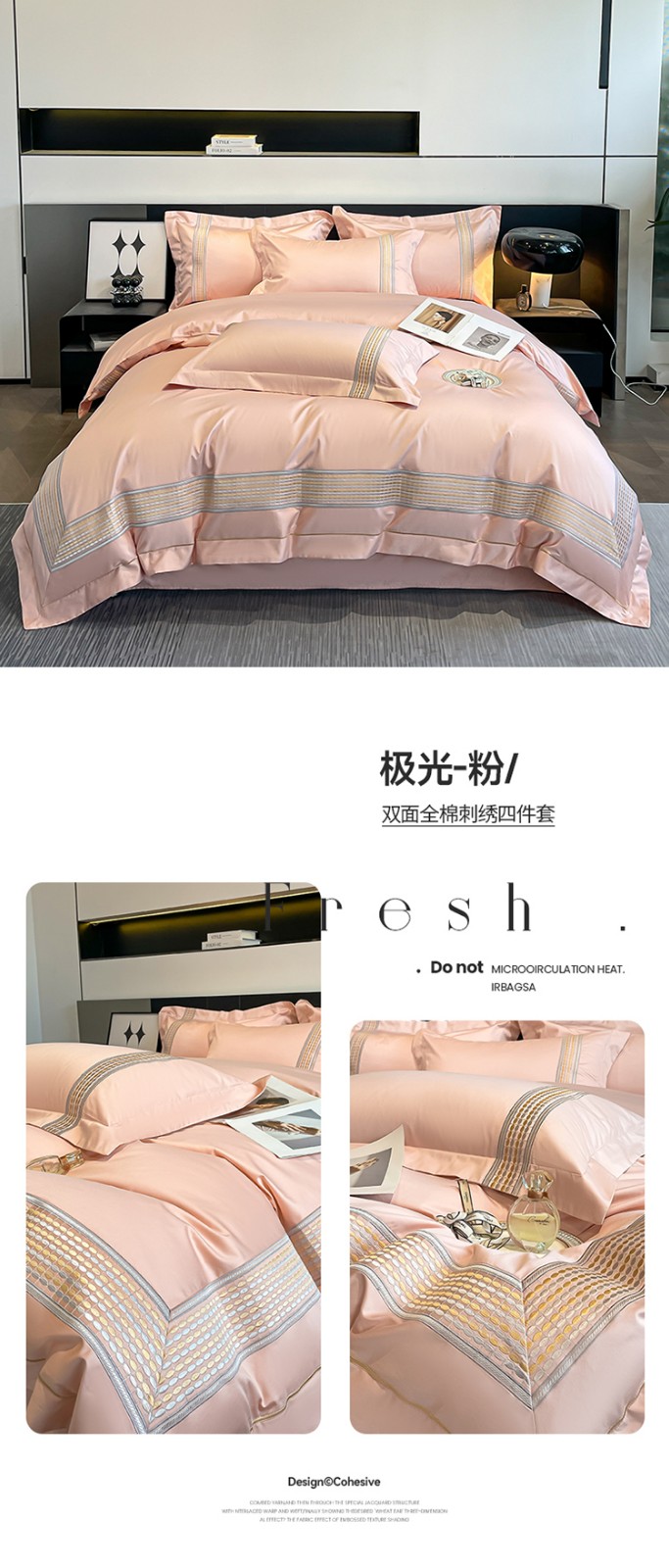 商品名称:高档礼盒装七星级酒店风双面加密加厚100%纯棉全棉刺绣四件套长绒棉床笠 极光-粉