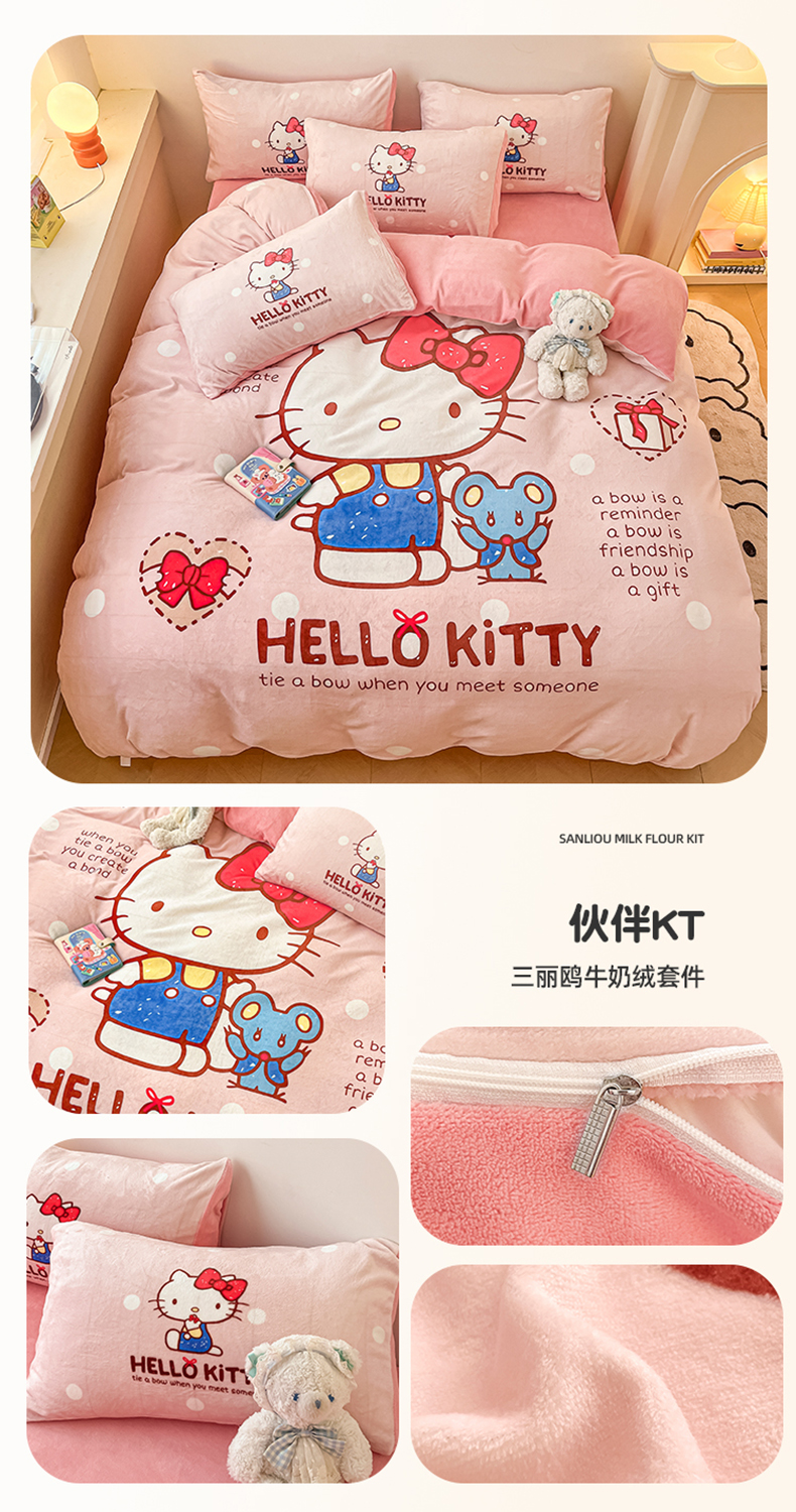 当前位置: 91家纺网 > 商品网购 > 床品套件 > 四件套 > 牛奶绒四件套 > 孩子王 2023正版授权直播三丽鸥卡通大版双面加厚牛奶绒系列 伙伴KT