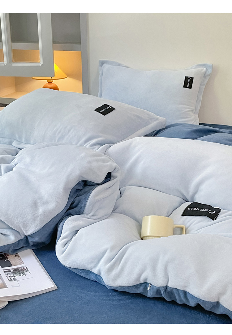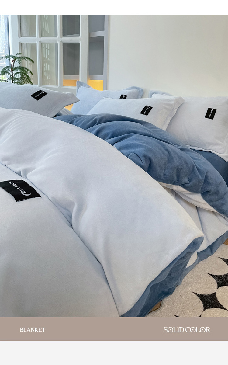柒月 2023新款纯色牛奶绒四件套 天空蓝+宾利蓝