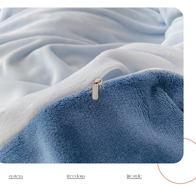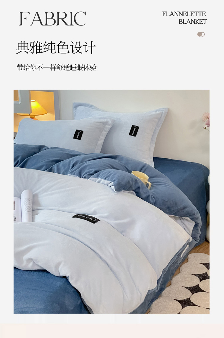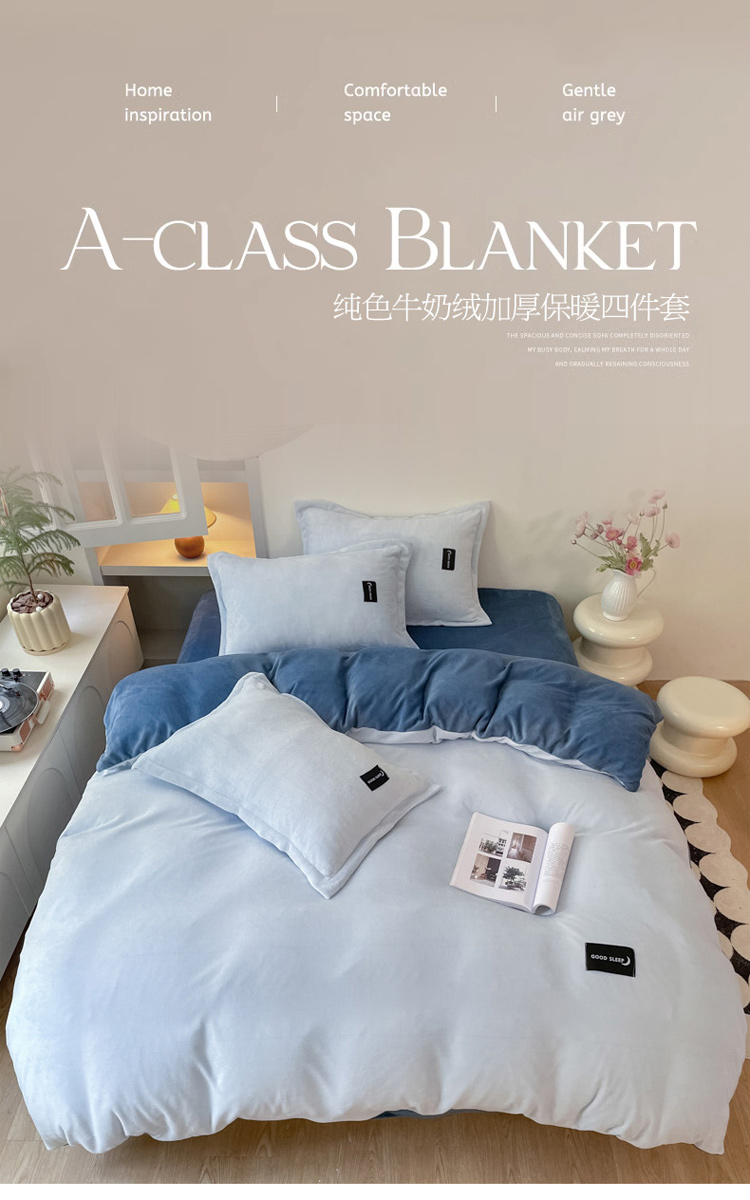 商品名称:柒月 2023新款纯色牛奶绒四件套 天空蓝+宾利蓝