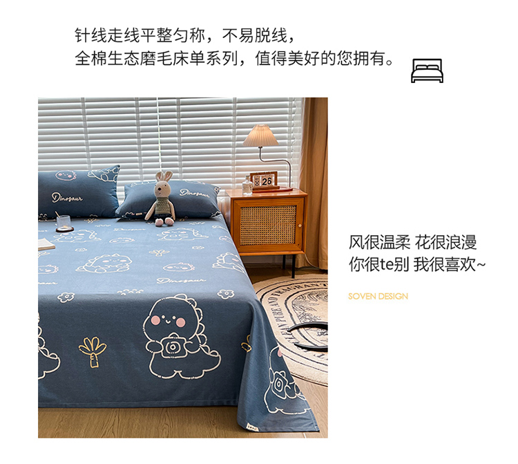 • 91家纺网 家纺一手货源 找家纺 芃成家纺 2023磨毛单床单 恐龙王国-兰