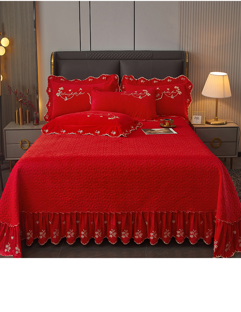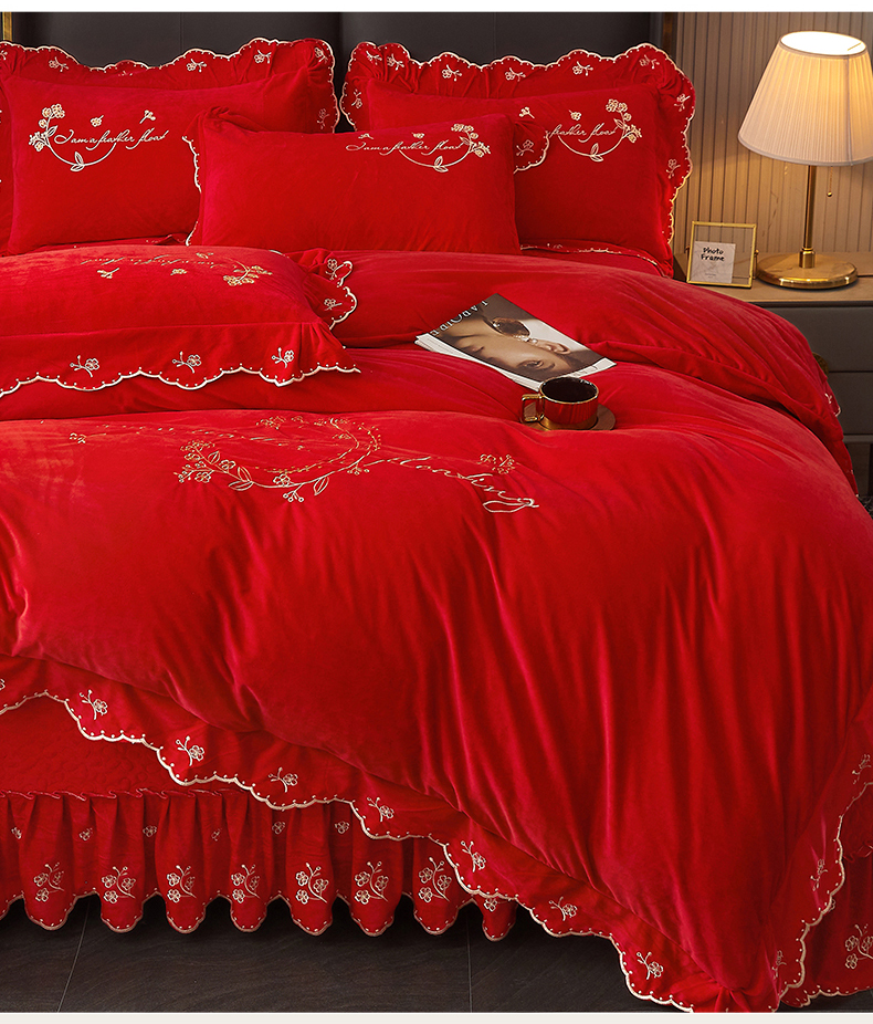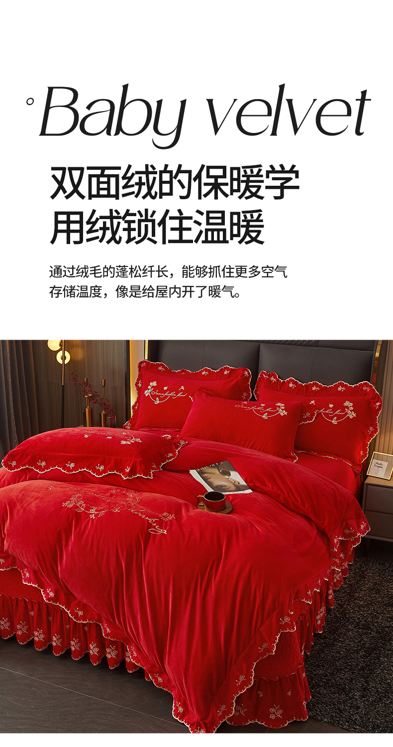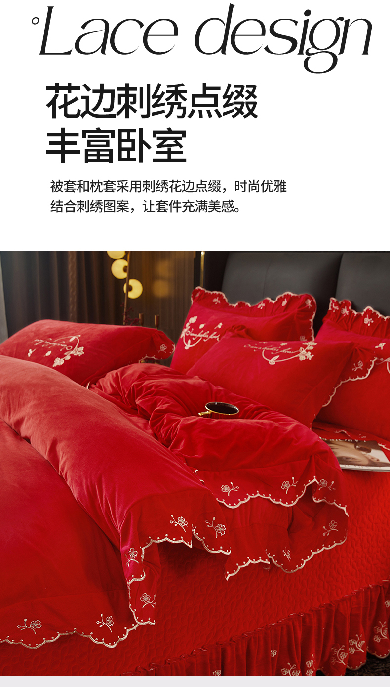 (总)恒爱 2022秋冬水晶绒翩翩花舞夹棉床裙四件套,大红色,豆沙红,橄榄绿,公主粉,桔色,咖啡色,孔雀绿,拉菲红,罗兰紫,玫红色,美人玉,米白色,米驼色,抹茶绿,浅灰色,紫色