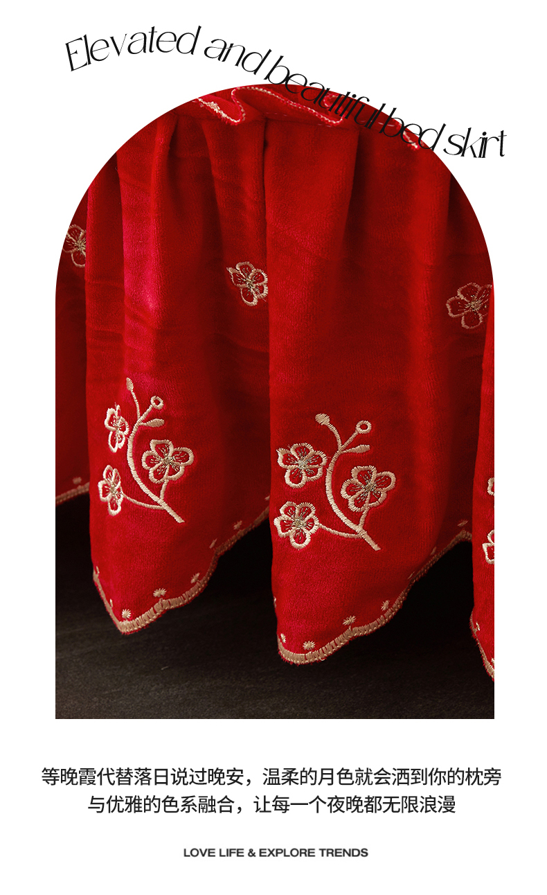 (总)恒爱 2022秋冬水晶绒翩翩花舞夹棉单床裙,大红色,豆沙红,橄榄绿,公主粉,桔色,咖啡色,孔雀绿,拉菲红,罗兰紫,玫红色,美人玉,米白色,米驼色,抹茶绿,浅灰色,紫色