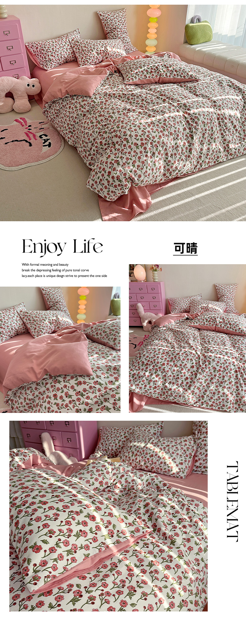 (总)千朵 2025新款全棉磨毛四件套,浪漫人生粉,浪漫人生米,香漫豆沙,茵然豆沙,茵然咖,珍妮咖,珍妮绿