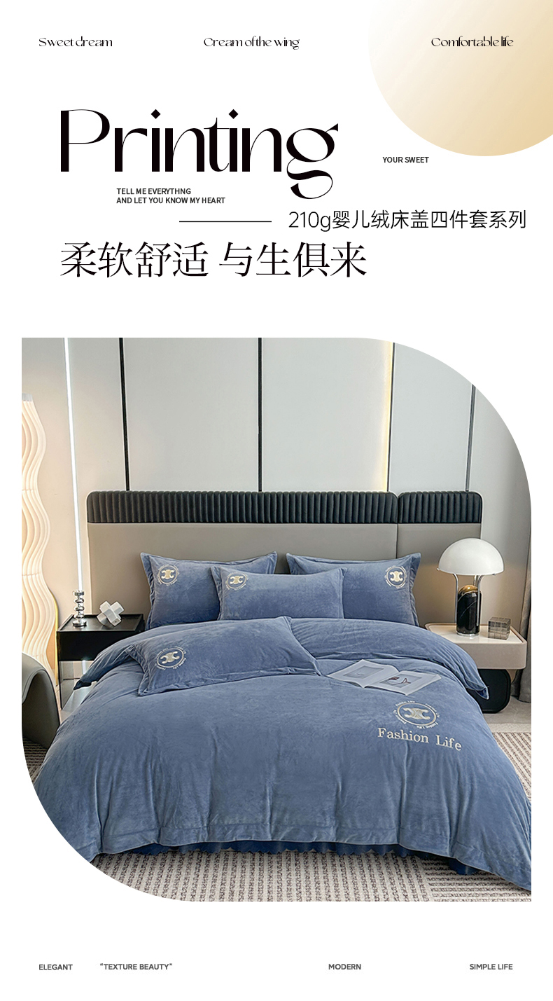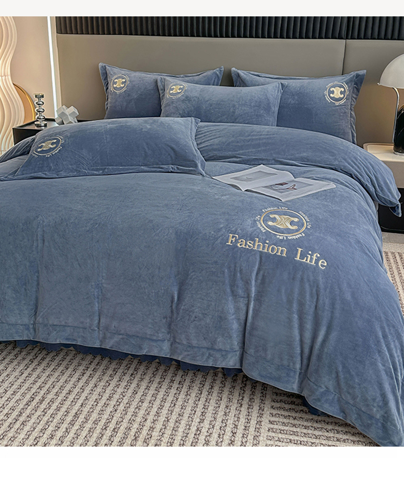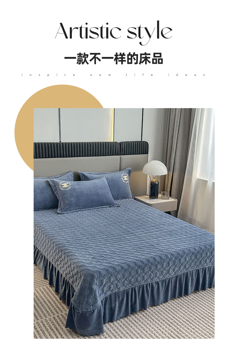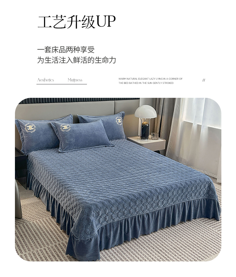 羋多家纺 210g婴儿绒床盖三件套牛奶绒床裙刺绣四件套中兰