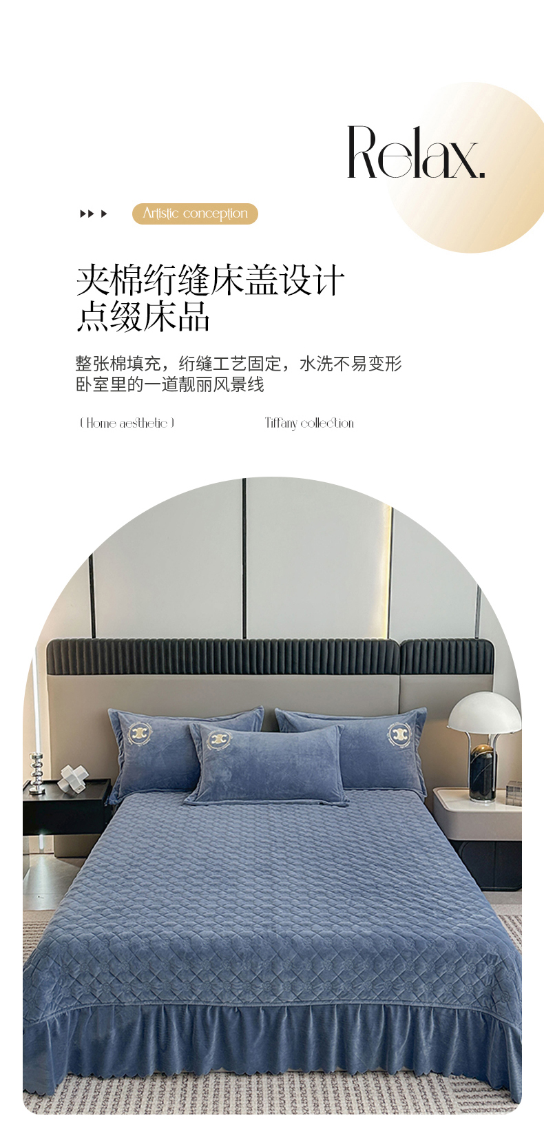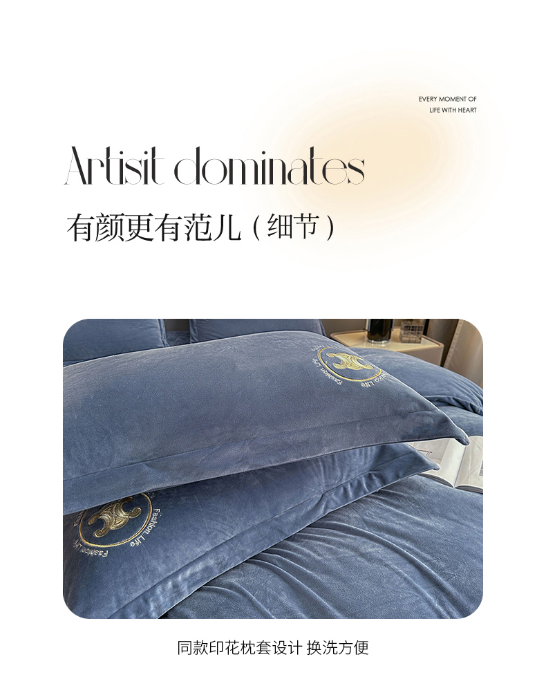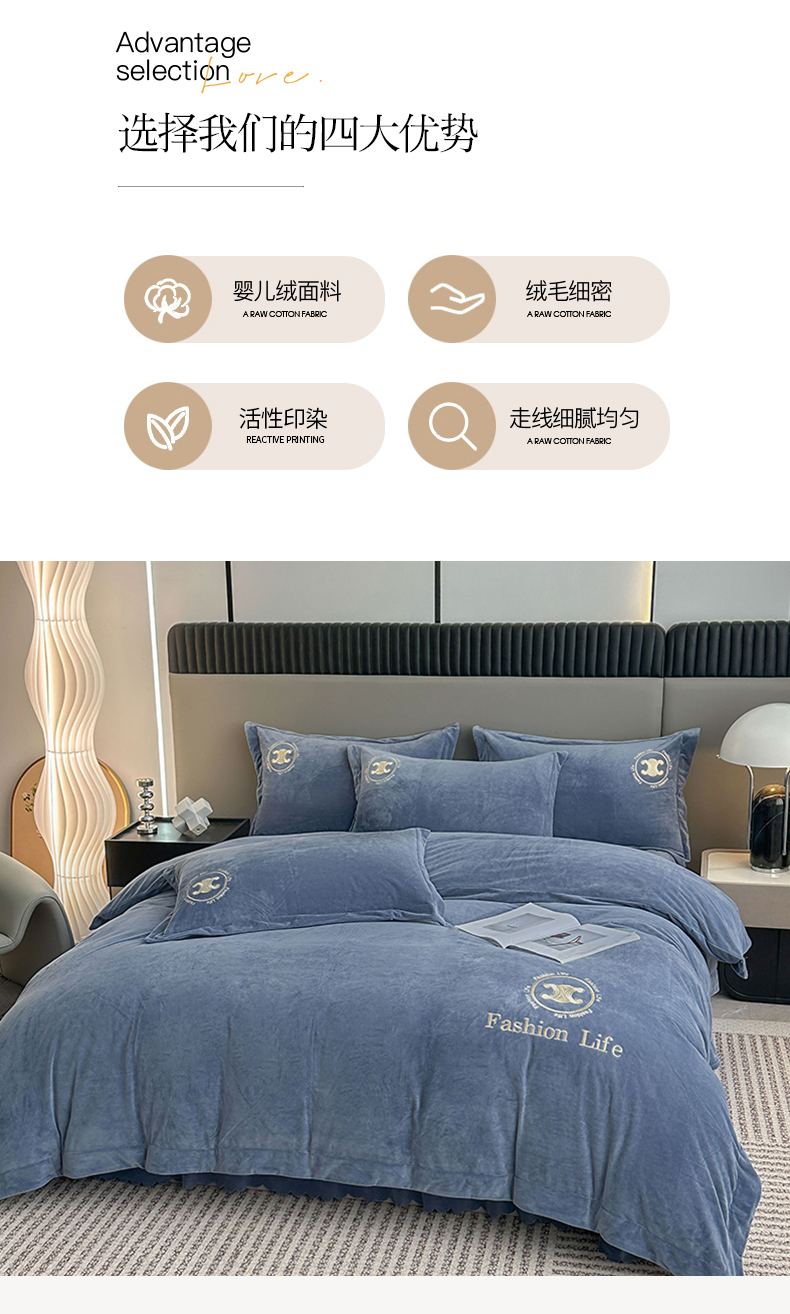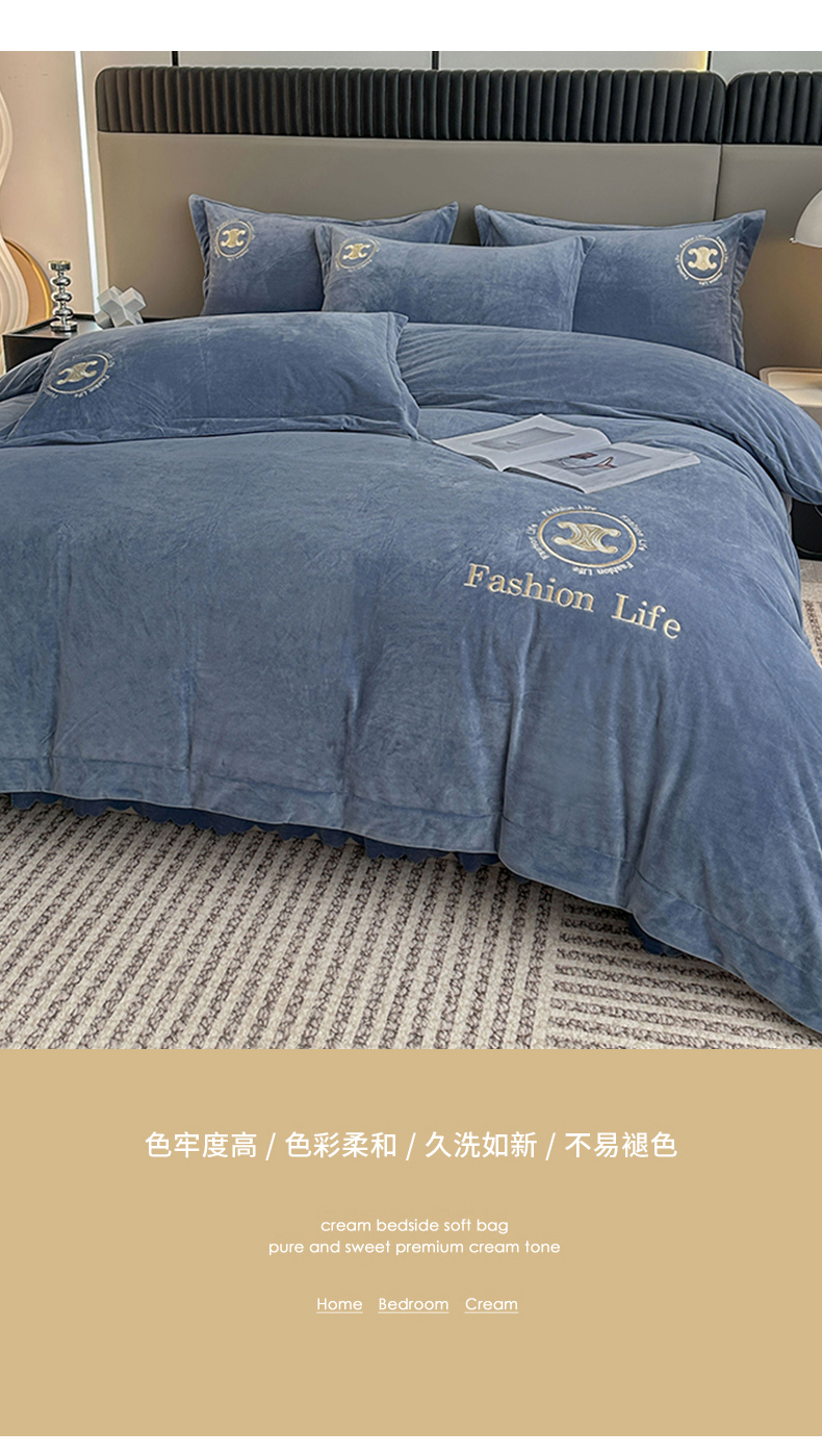 羋多家纺 210g婴儿绒床盖三件套牛奶绒床裙刺绣四件套中兰