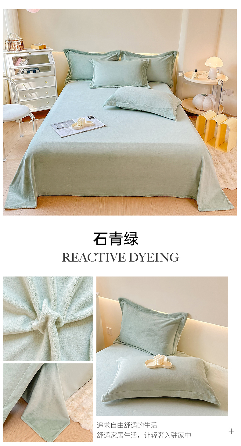 2023年新款多功能毛毯牛奶绒床单三件套 石青绿