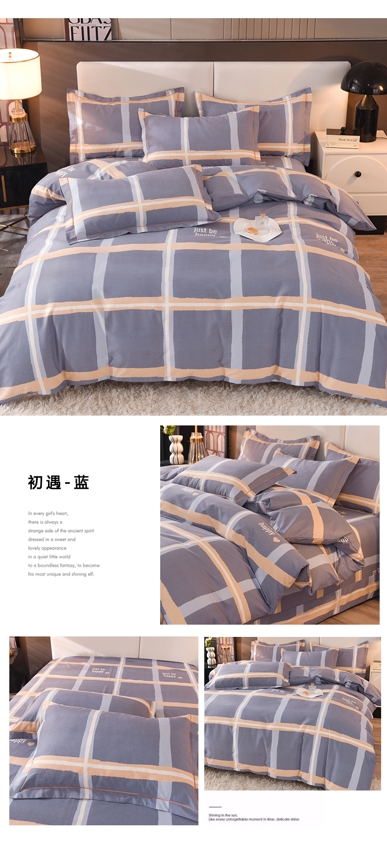 当前位置: 91家纺网 > 商品网购 > 床品套件 > 四件套 > 全棉普通四件套 > 简如 2025新款全棉磨毛印花四件套 初遇-蓝