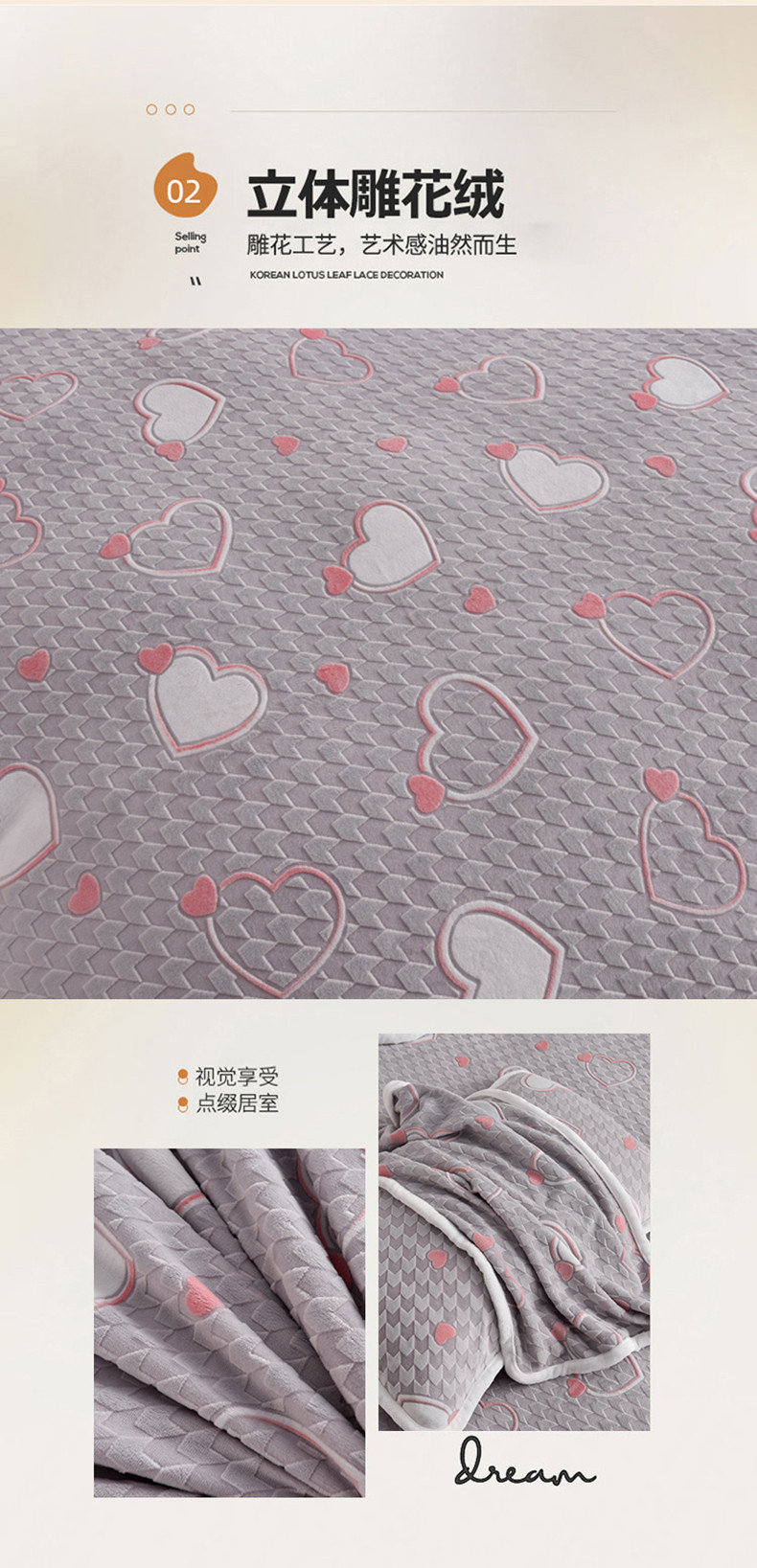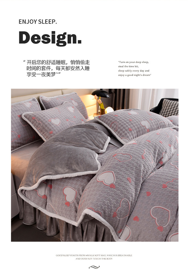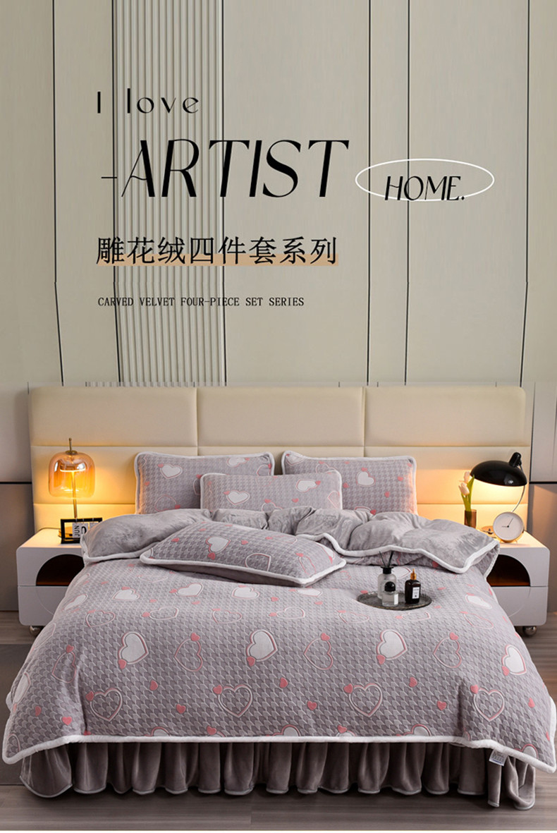 商品名称:畅畅家纺 2023新款A类雕花绒牛奶绒四件套 心心相印