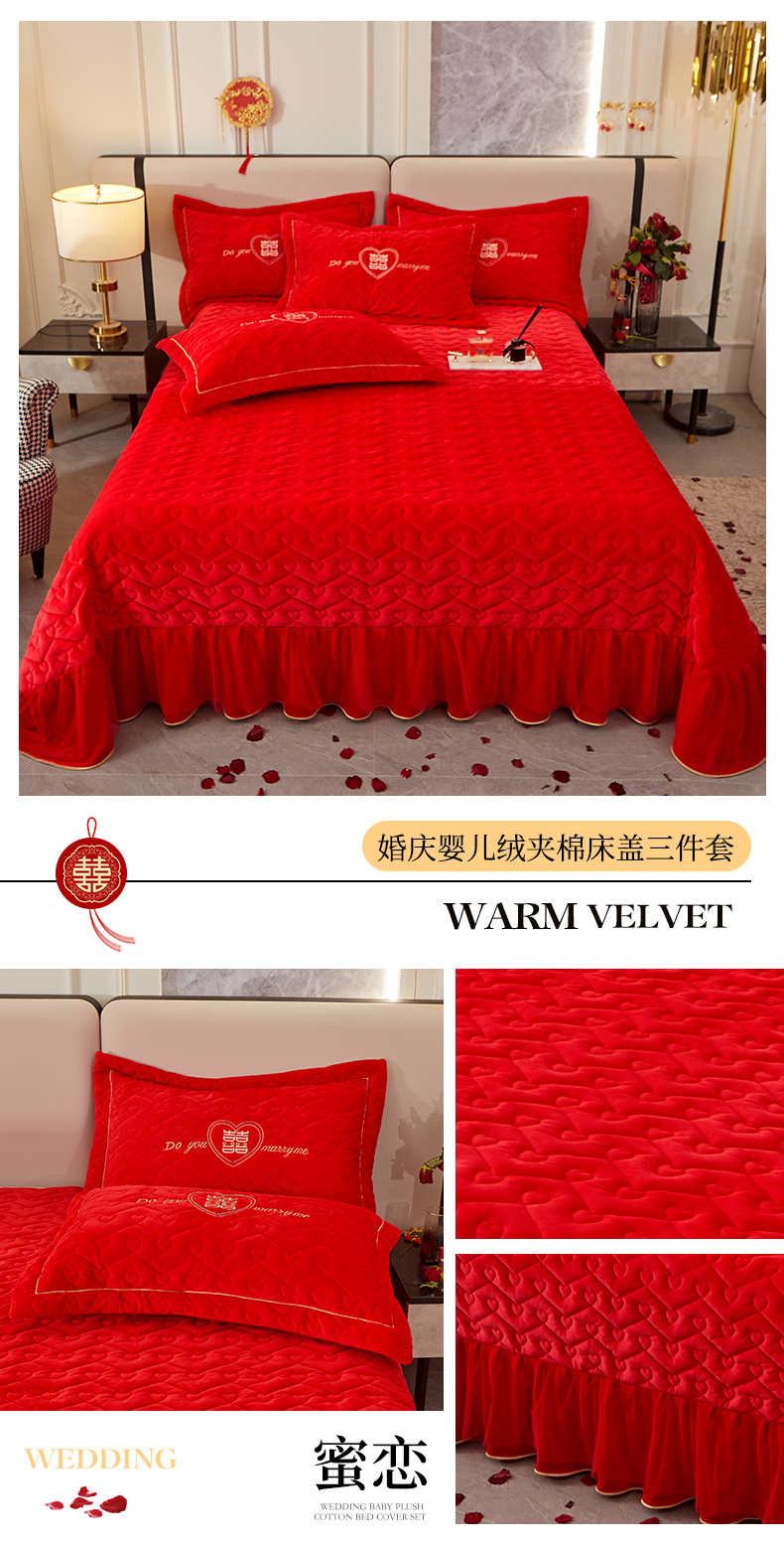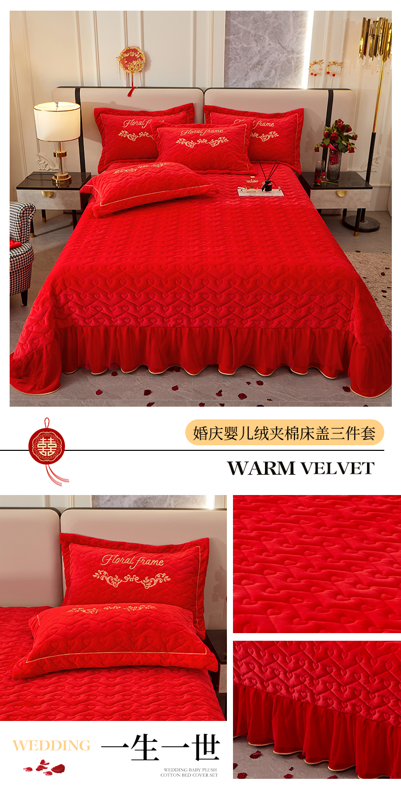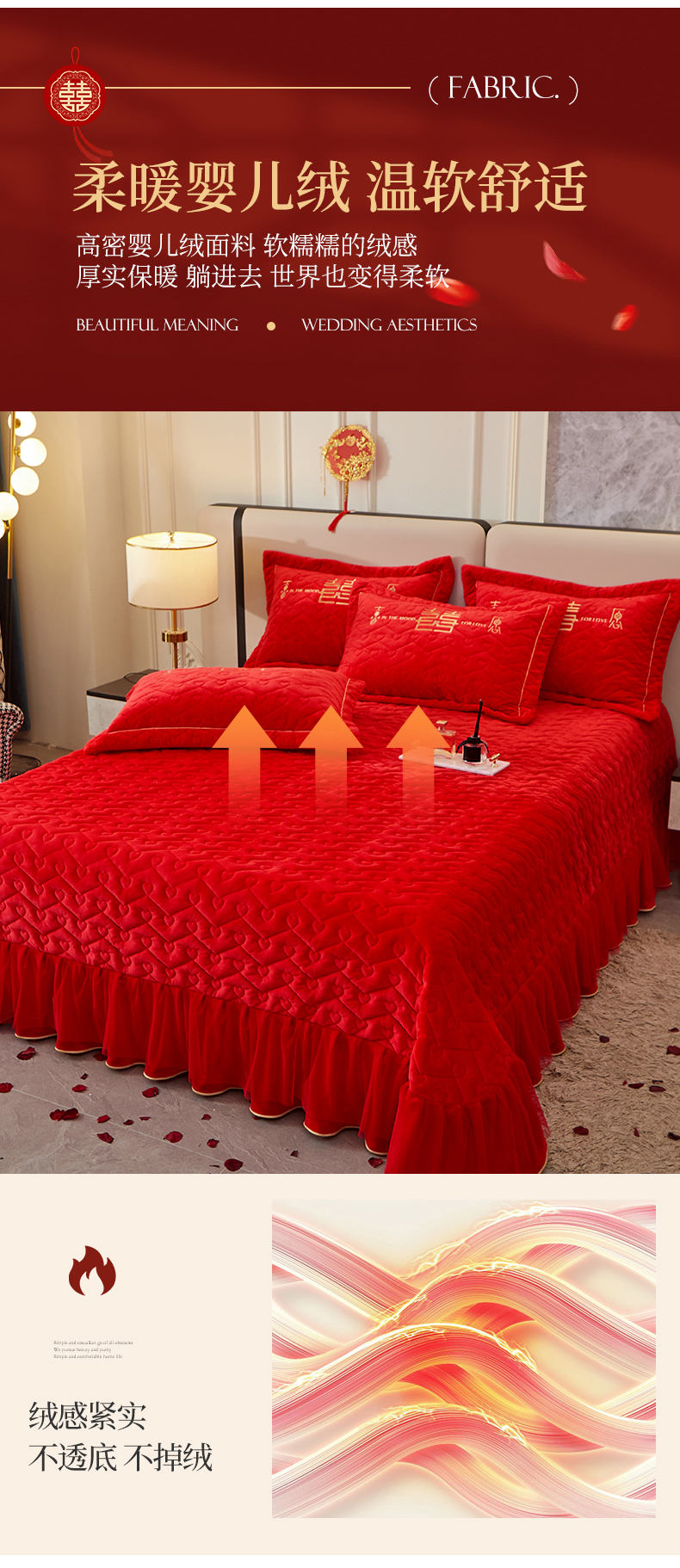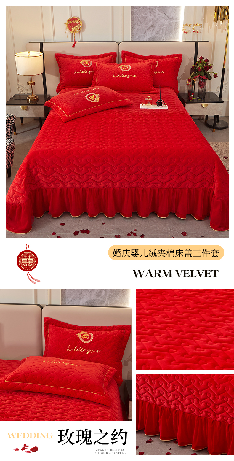 商品名称:(总)宜凡家纺 2023秋冬新品婴儿绒婚庆床盖三件套