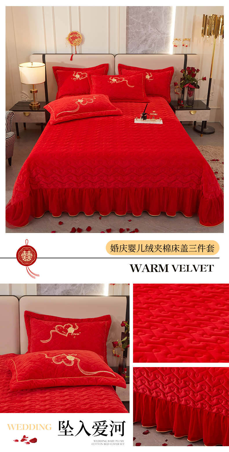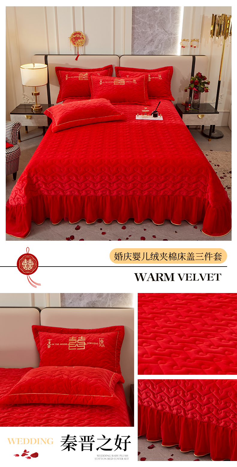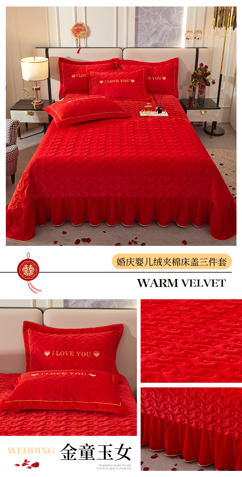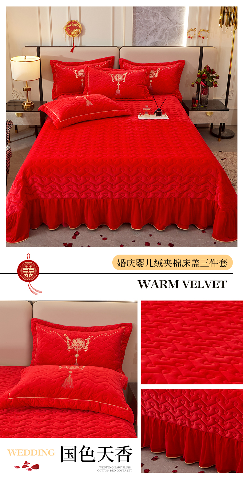 商品名称:(总)宜凡家纺 2023秋冬新品婴儿绒婚庆床盖三件套