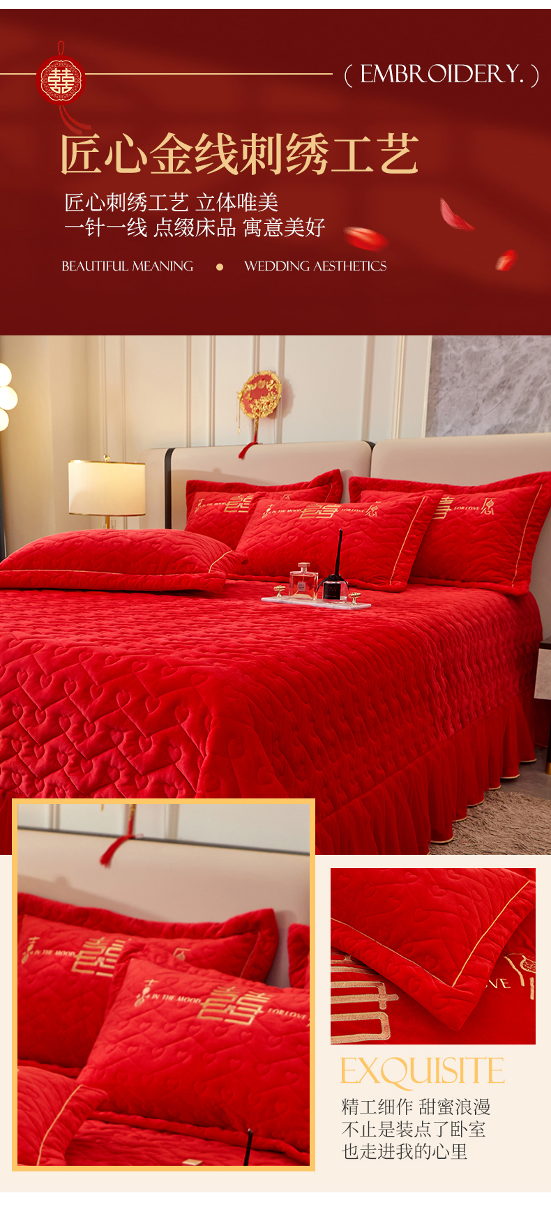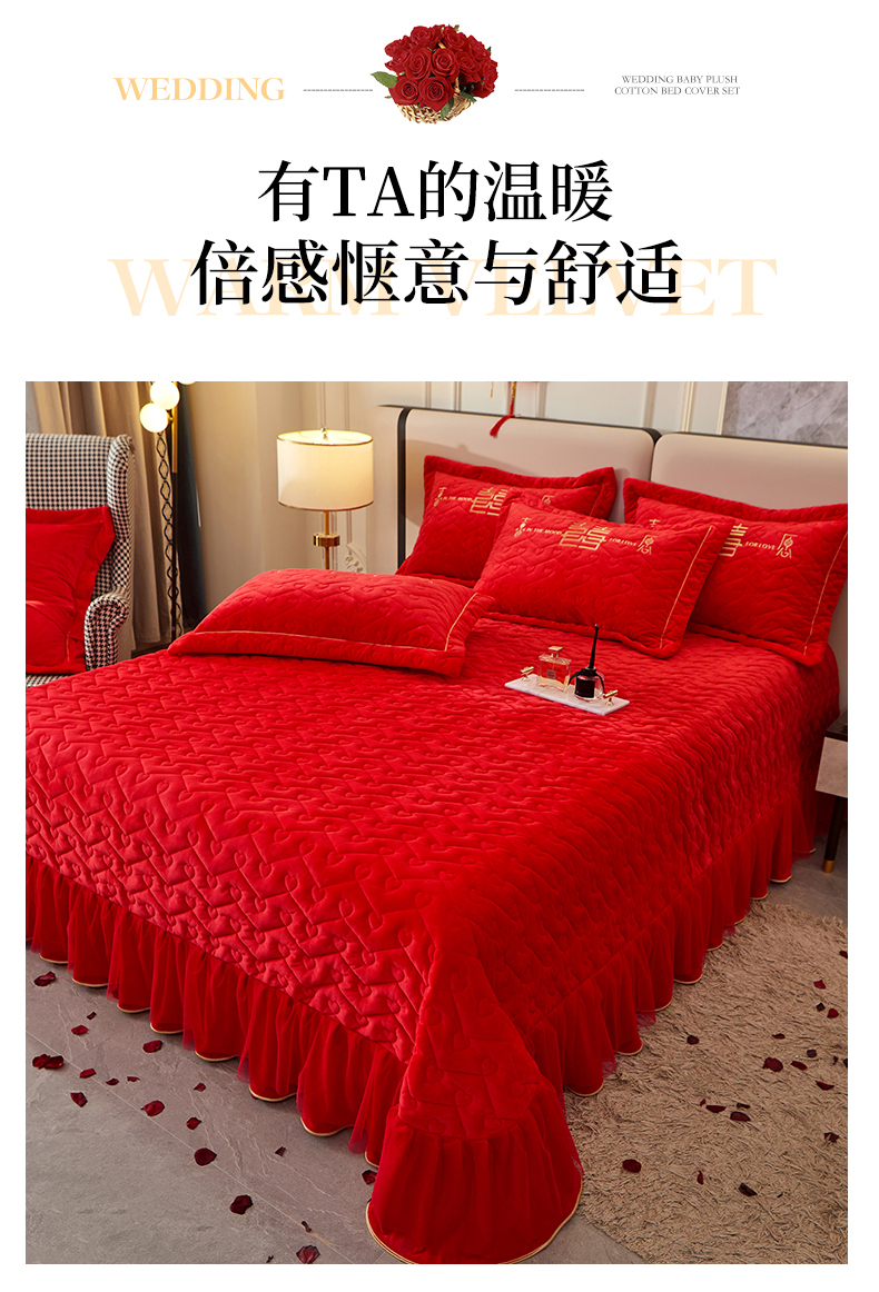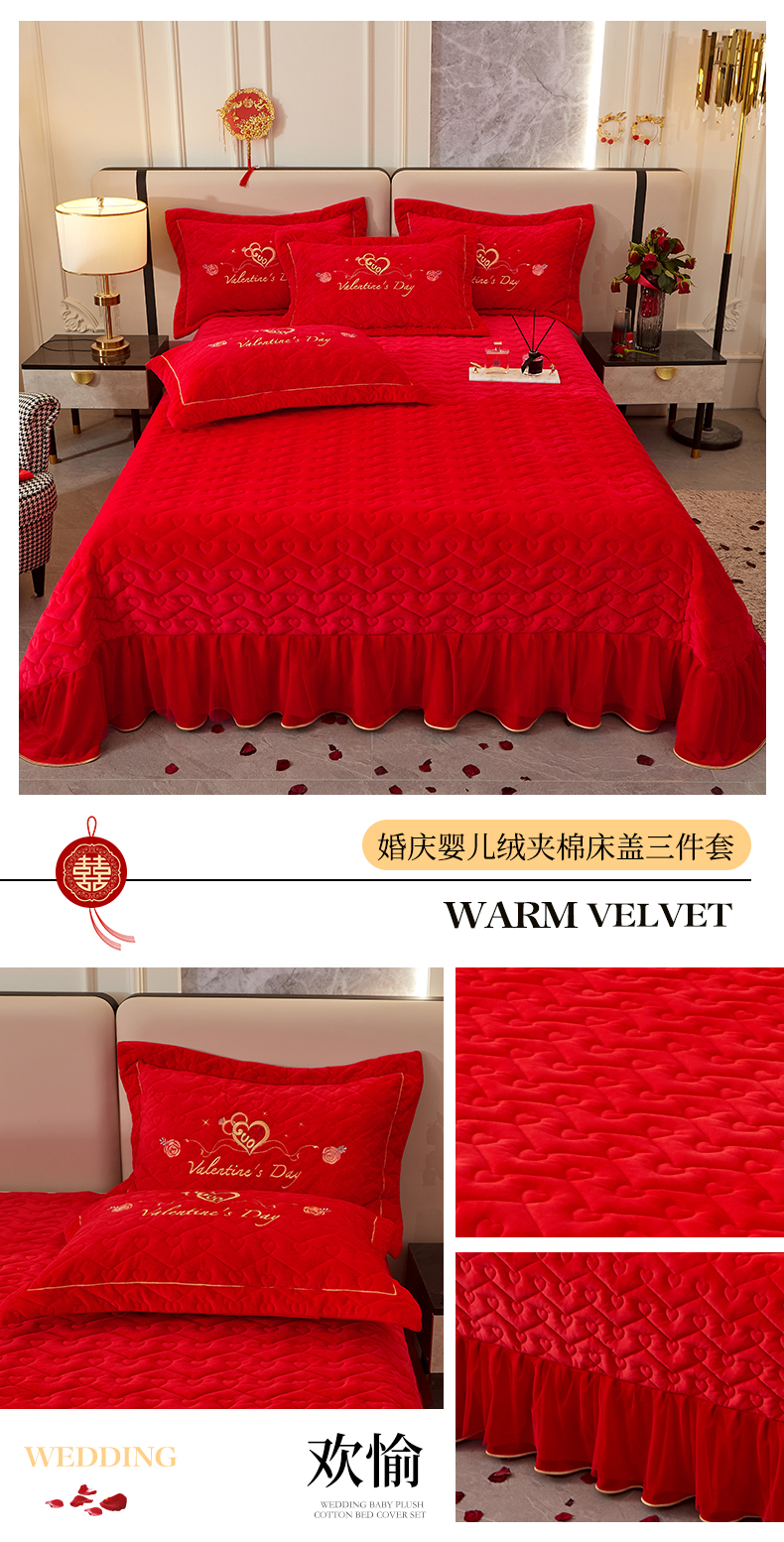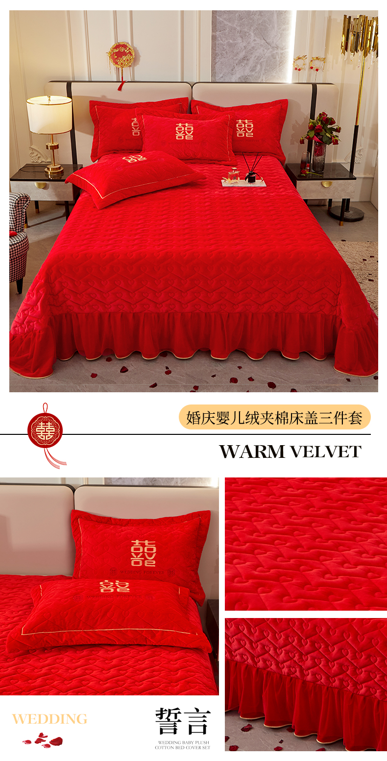 商品名称:(总)宜凡家纺 2023秋冬新品婴儿绒婚庆床盖三件套